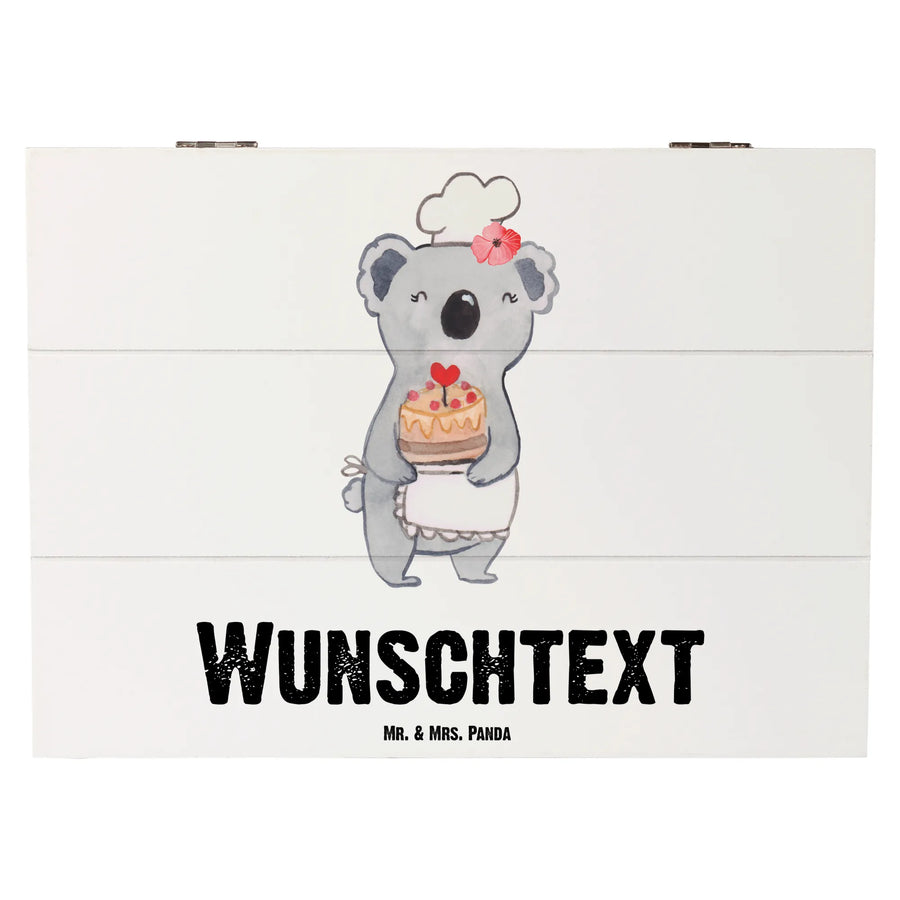 Die Kiste besticht durch ihr zauberhaftes Design, das einen süßen Koala zeigt, der stolz eine Torte hält. Es ist eine tolle Möglichkeit, den Stolz und die Freude einer Bäckerin oder Konditorin zu zeigen. Der eingravierte Slogan "Du bist nur ein halber Mensch, wenn du keine Konditorin bist" macht die Kiste zu etwas ganz Besonderem und zeigt, wie wichtig die Backkunst für viele ist.