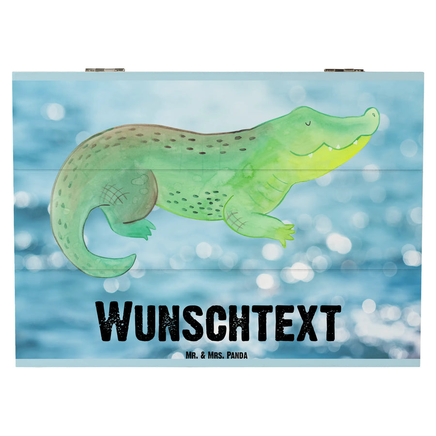 Personalisierte Holzkiste Krokodil - 25 x 18 cm - Oceanblue