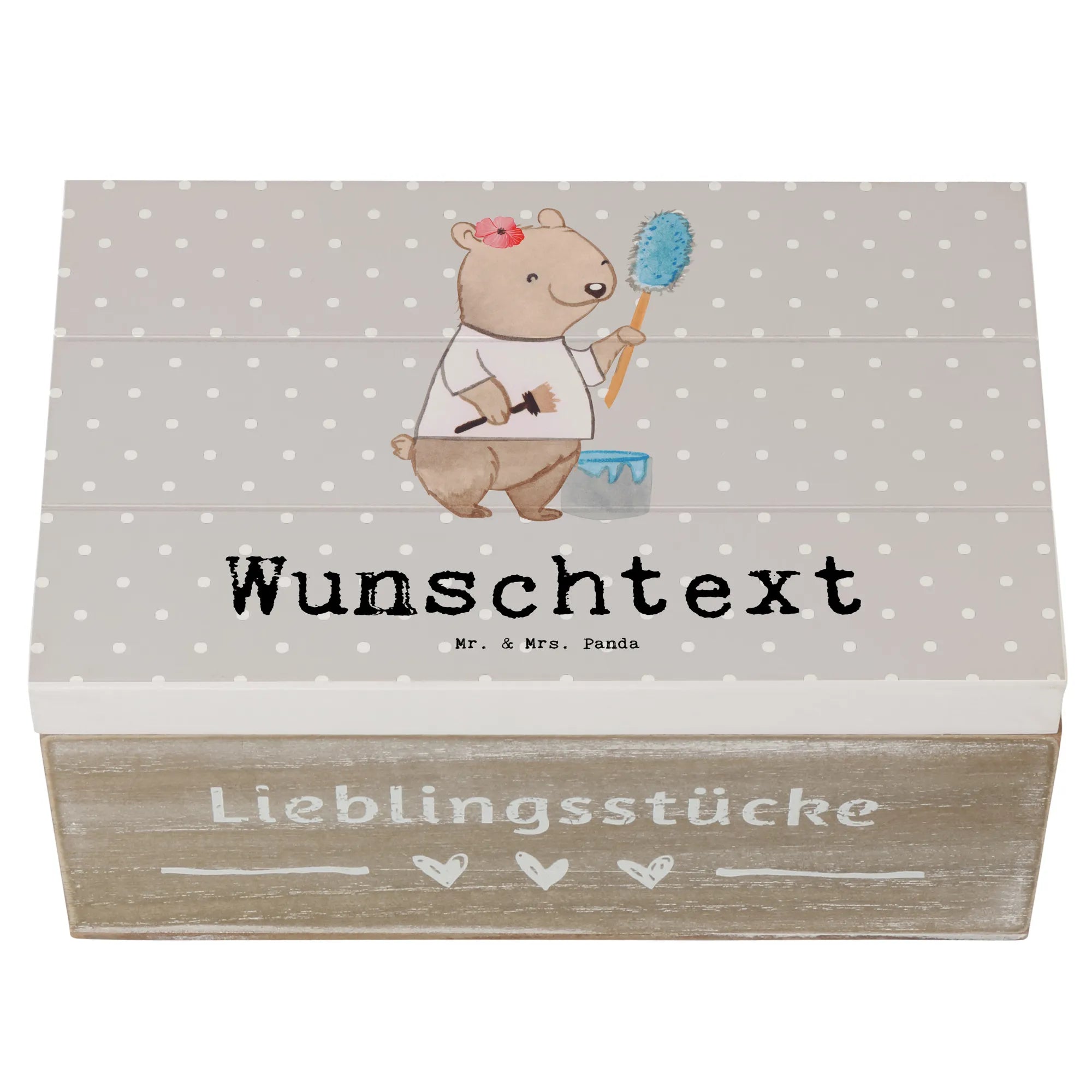 Verschenke ein Stück Freude und Erinnerung – mit der Holzkiste „Malerin mit Herz“ von Mr. & Mrs. Panda.