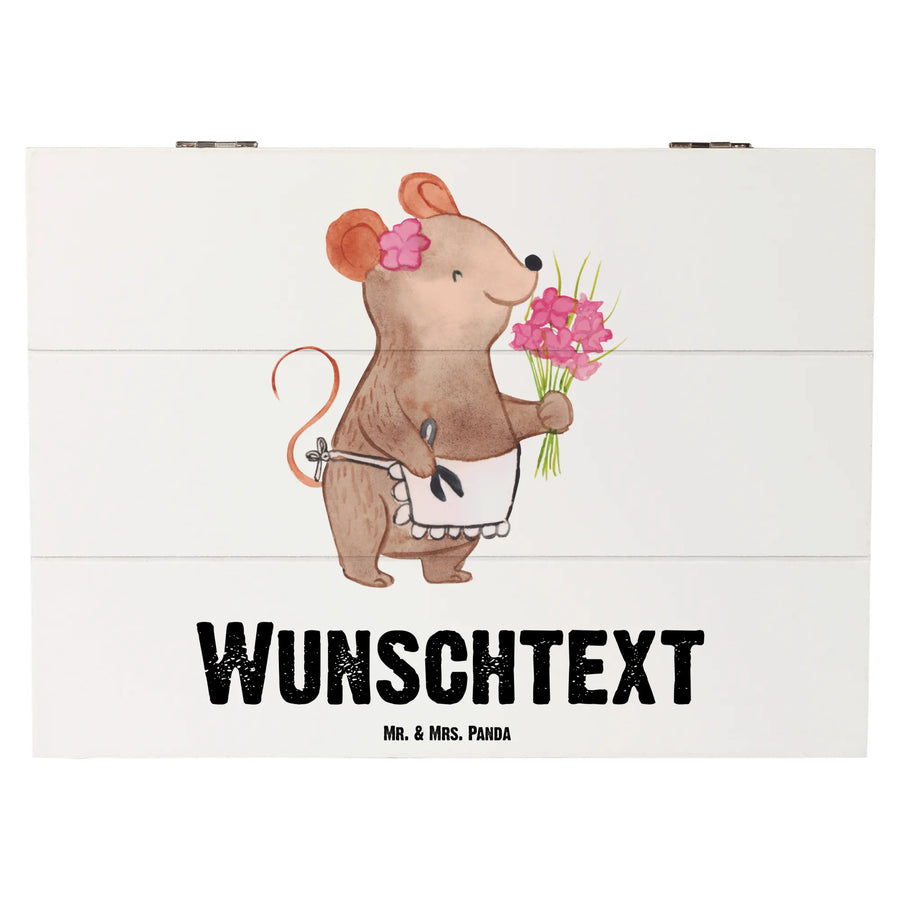 Mit einem handgemalten Motiv einer süßen Maus, die stolz ihre Blumen präsentiert, wird jede Kiste zu einem ganz speziellen Unikat. Die Kiste ist personalisierbar mit deinem Wunschnamen und zaubert jedem, der sie erhält, ein Lächeln ins Gesicht.