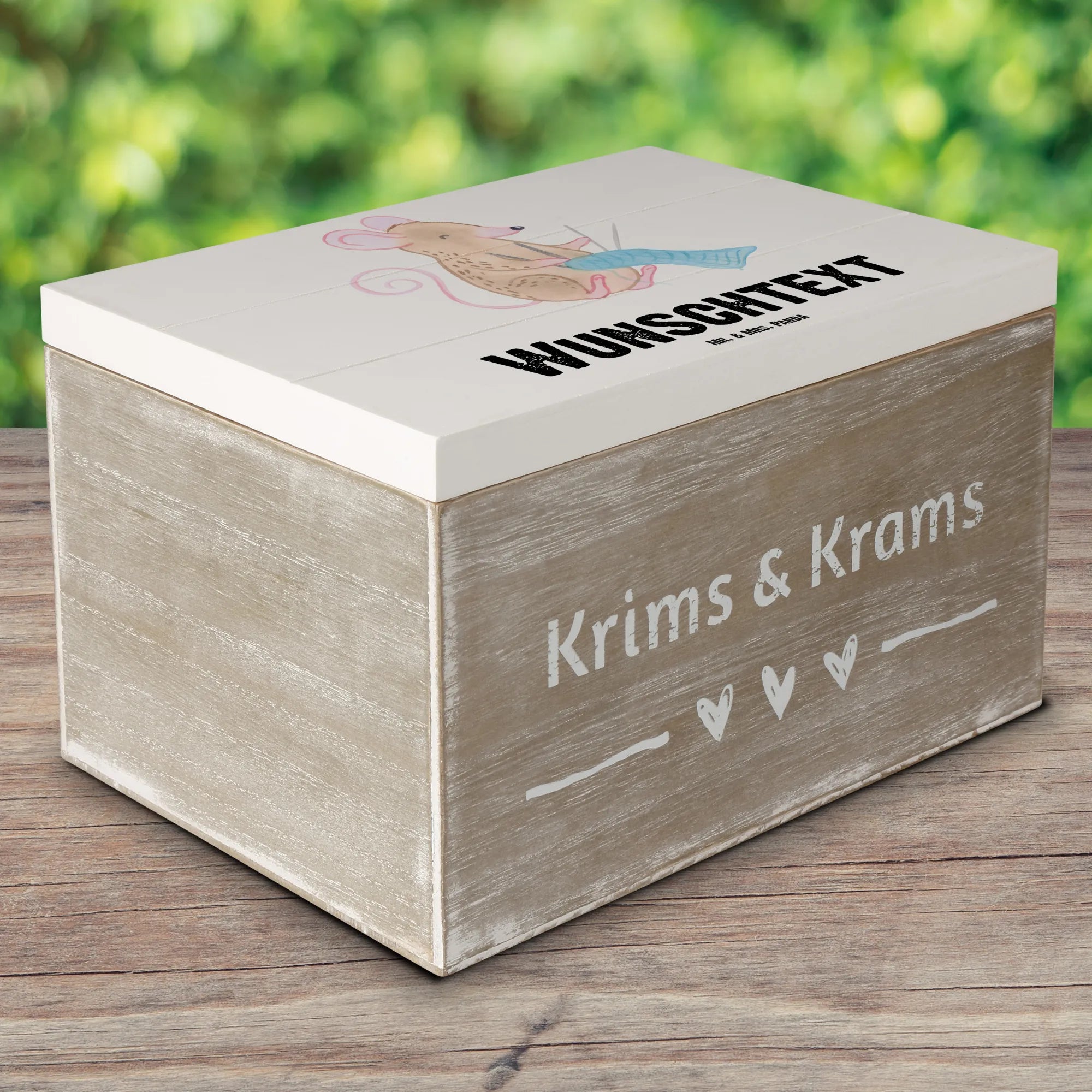 Entdecke die zauberhafte Welt unserer personalisierten Holzkiste "Maus Stricken Tage" von Mr. & Mrs. Panda! Diese wunderschöne Kiste ist der perfekte Aufbewahrungsort für all deine Schätze und Erinnerungen.