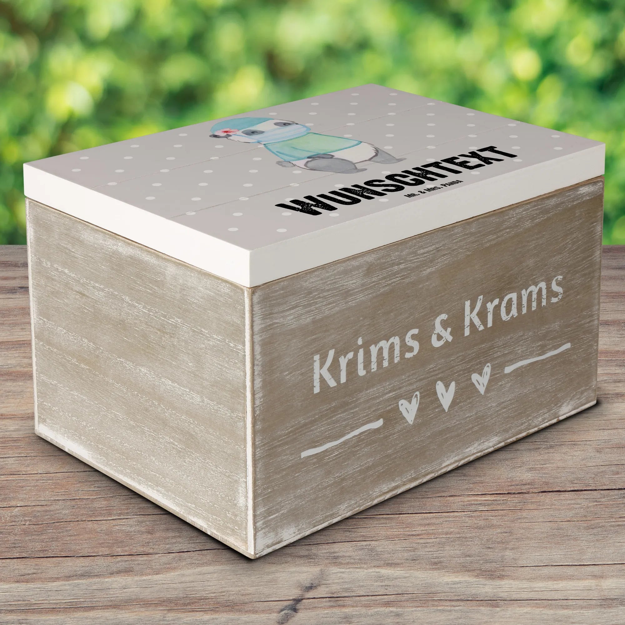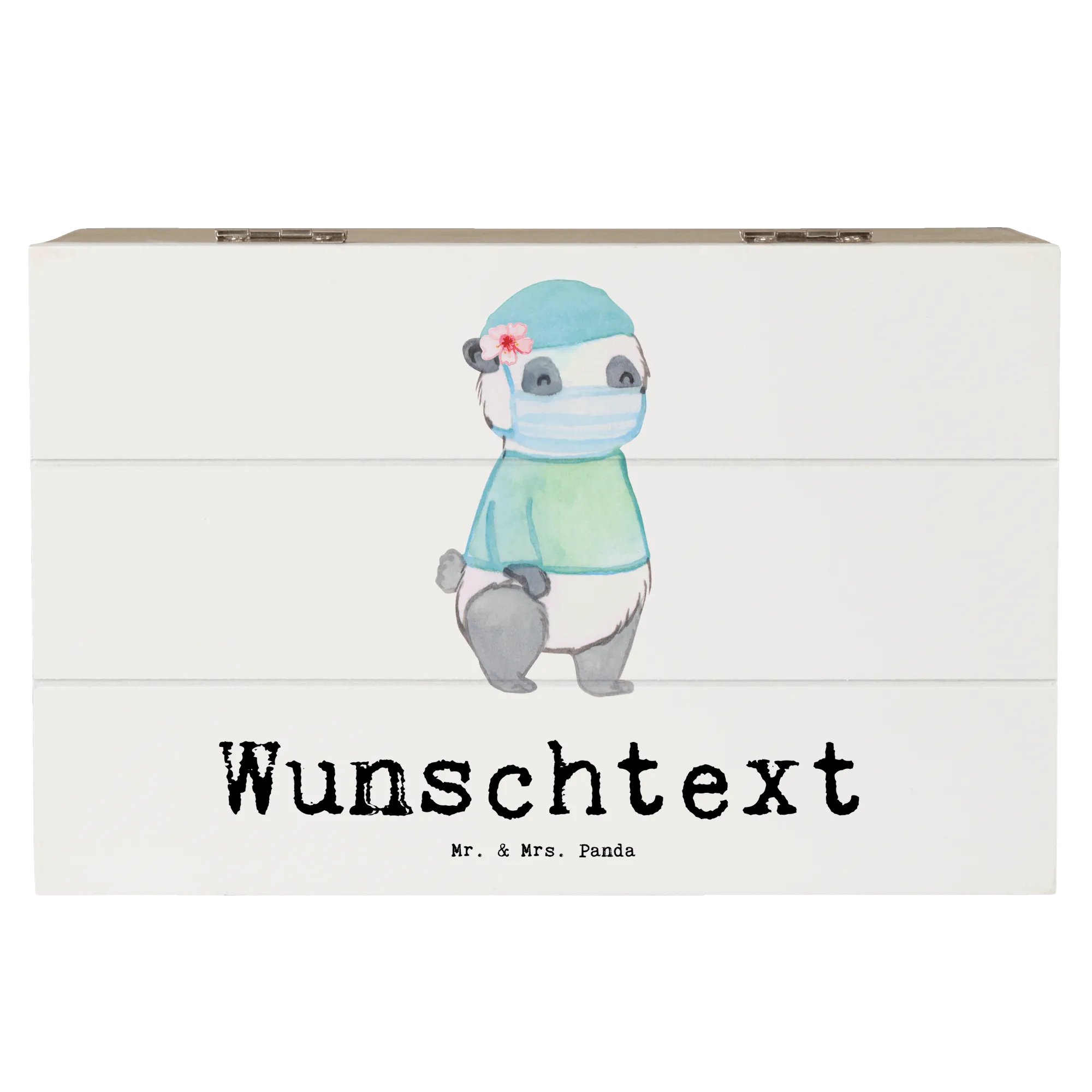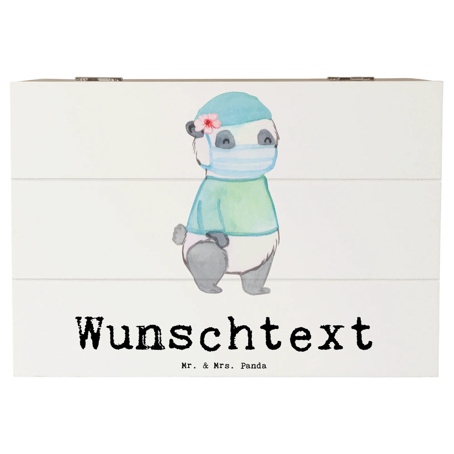 Die personalisierte Holzkiste "Operationsassistentin mit Herz" von Mr. & Mrs. Panda ist das perfekte Geschenk für jeden, der in der aufregenden Welt der Operationsassistenz arbeitet. Mit einem liebevoll gestalteten Motiv, das einen niedlichen Panda in einem blauen Kittel und Mundschutz zeigt, wird diese Kiste zum Highlight jeder Feier!
