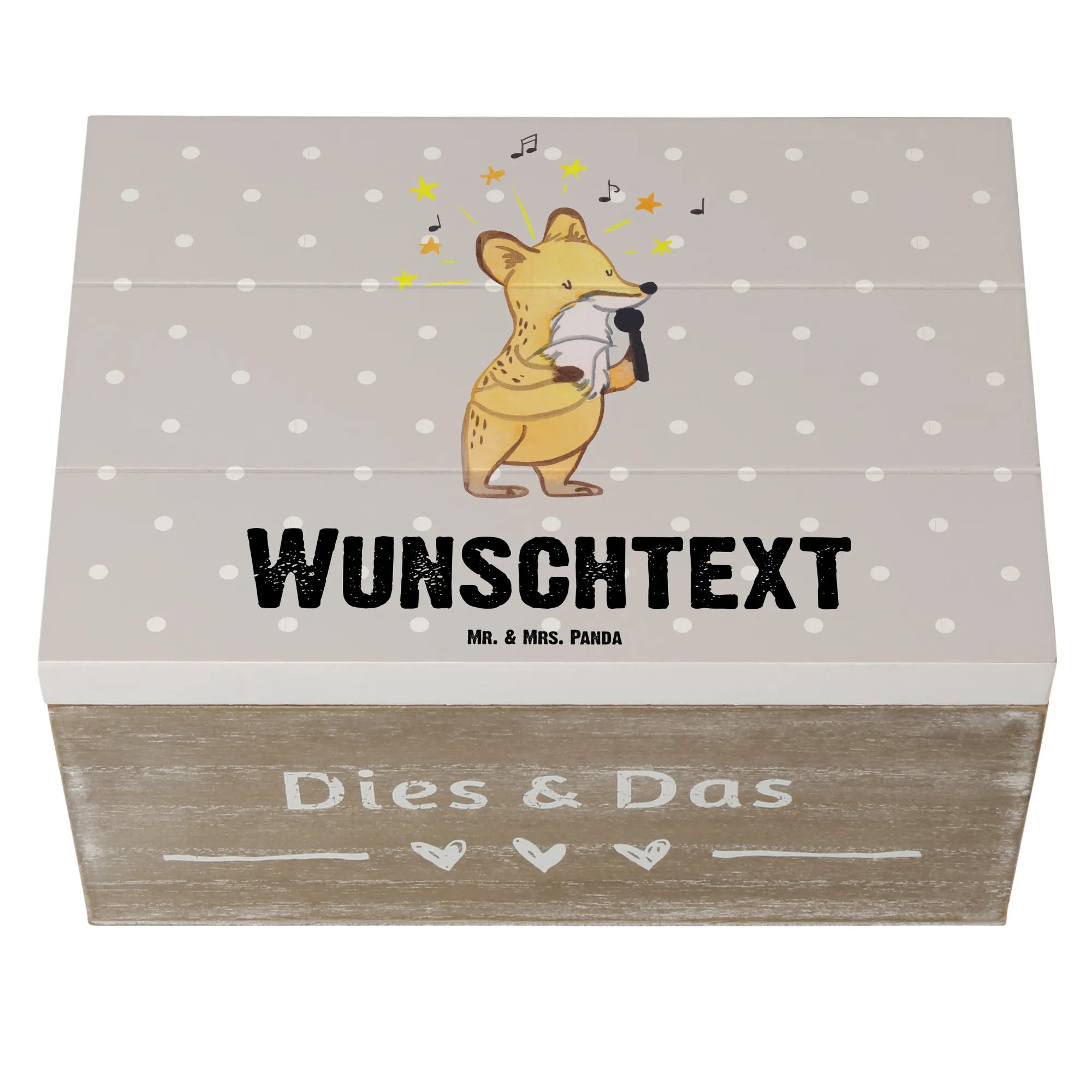 Diese wunderschöne Kiste ist nicht nur ein einzigartiges Geschenk, sondern auch ein perfekter Aufbewahrungsort für all deine kostbaren Erinnerungen. Mit einem liebevoll handgezeichneten Motiv, das einen süßen Fuchs zeigt, der stolz in ein Mikrofon singt, bringt diese Kiste etwas ganz Besonderes in dein Zuhause.