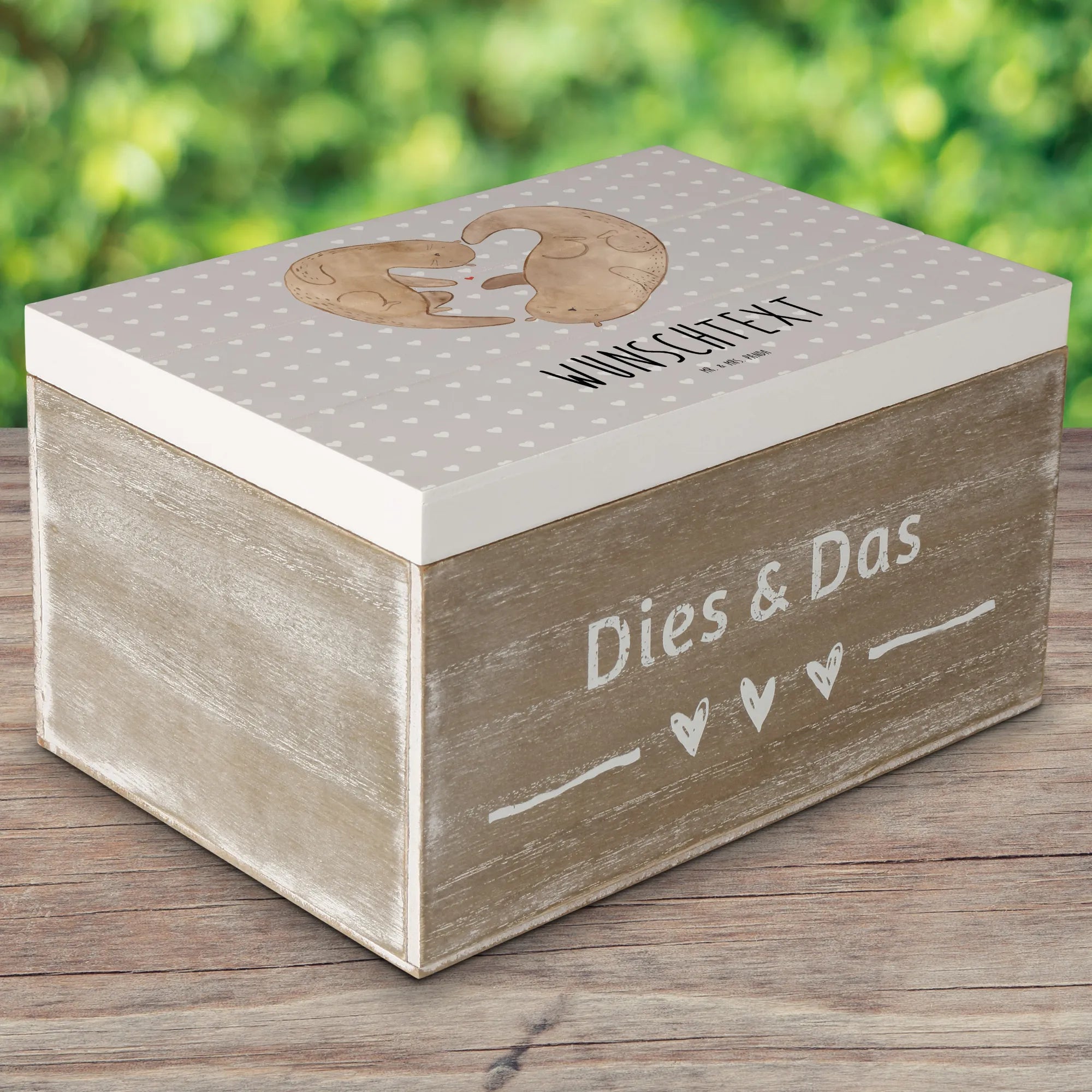 Die personalisierte Holzkiste "Otter Valentine" von Mr. & Mrs. Panda ist das perfekte Geschenk für Deine Liebsten. Mit einem einzigartigen Motiv, das zwei süße Otter zeigt, die sich an den Pfoten halten und zusammen ein Herz formen, strahlt diese Kiste pure Liebe und Zuneigung aus. Egal ob zum Valentinstag, Jahrestag oder einfach als Liebesbeweis – mit dieser Kiste schaffst Du unvergessliche Erinnerungen.