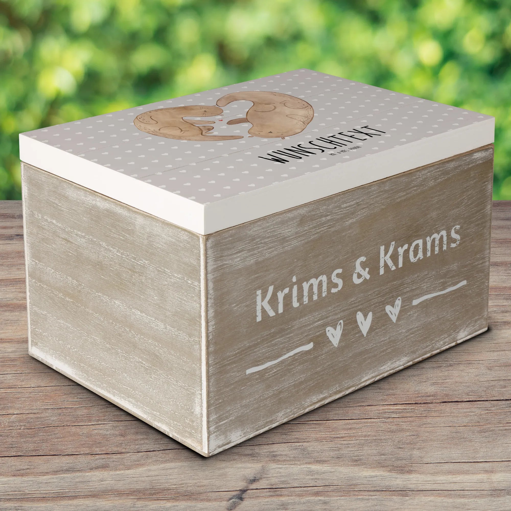 Diese wunderschöne Holzkiste von Mr. & Mrs. Panda ist nicht nur individuell anpassbar, sondern auch ein einzigartiger Aufbewahrungsort für all die kleinen Schätze deines Lebens. Mit ihrem bezaubernden Motiv von zwei süßen Ottern, die sich liebevoll an den Pfoten halten und ein Herz bilden, strahlt diese Kiste pure Zärtlichkeit und Verbundenheit aus. Sie ist ideal für Anlässe wie den Valentinstag, Hochzeitstage oder als Liebesgeschenk zum Jahrestag.
