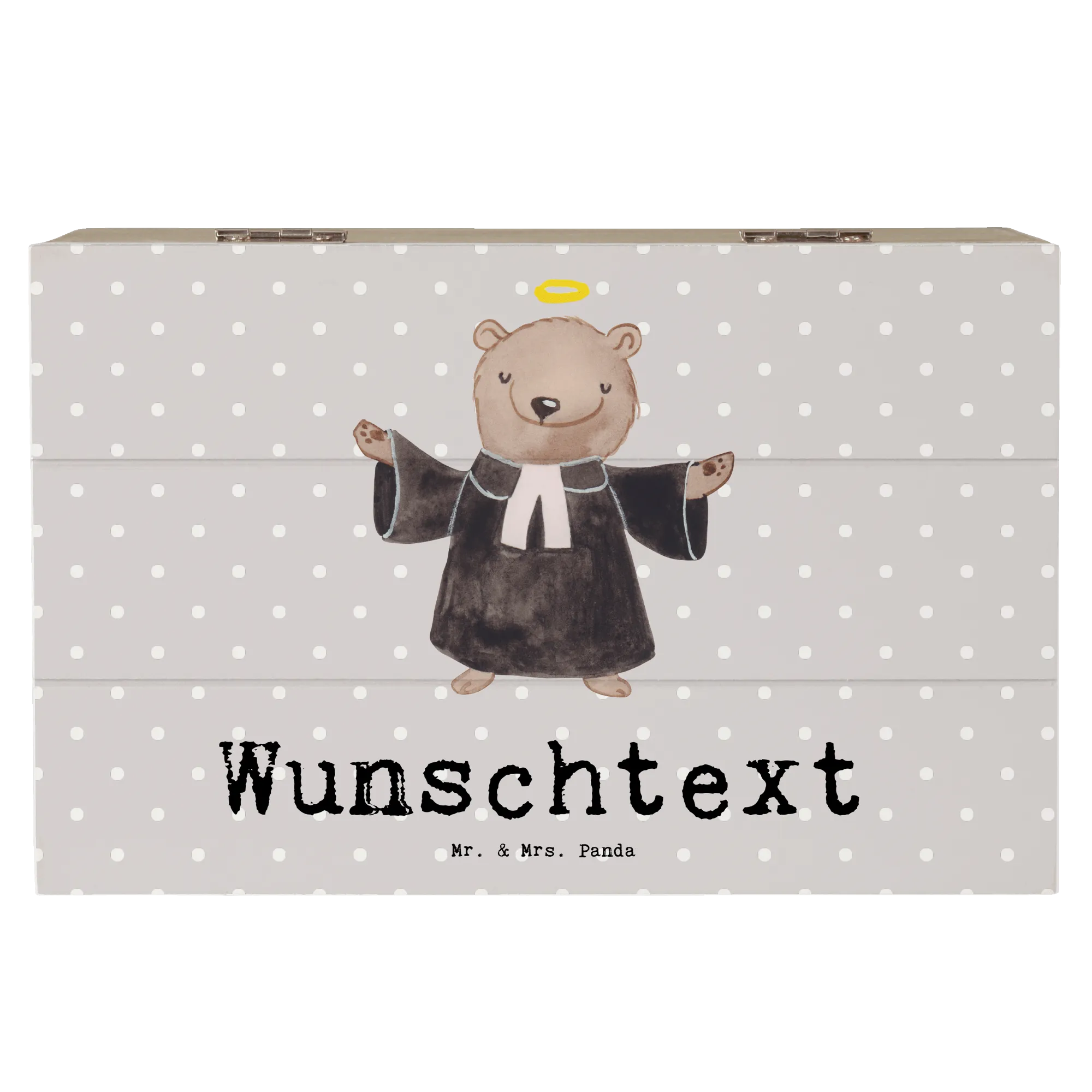 Personalisierte Holzkiste Pastor mit Herz - 22 x 15 cm - Grau Pastell