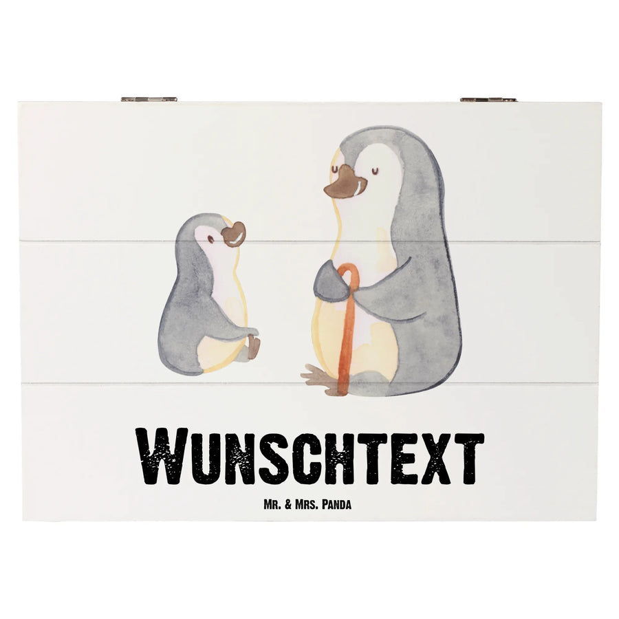 Die personalisierte Holzkiste mit dem süßen Pinguin-Motiv "Bester Opa der Welt" von Mr. & Mrs. Panda ist das perfekte Geschenk für alle großartigen Großväter! 🎁 Diese wunderschöne Schatzkiste ist nicht nur ein stilvolles Deko-Objekt, sondern auch der ideale Aufbewahrungsort für die wichtigsten Erinnerungen wie Fotos, Kindheitsschätze oder kleine Geschenke. Damit zeigst du deinem Opa, wie viel er dir bedeutet.