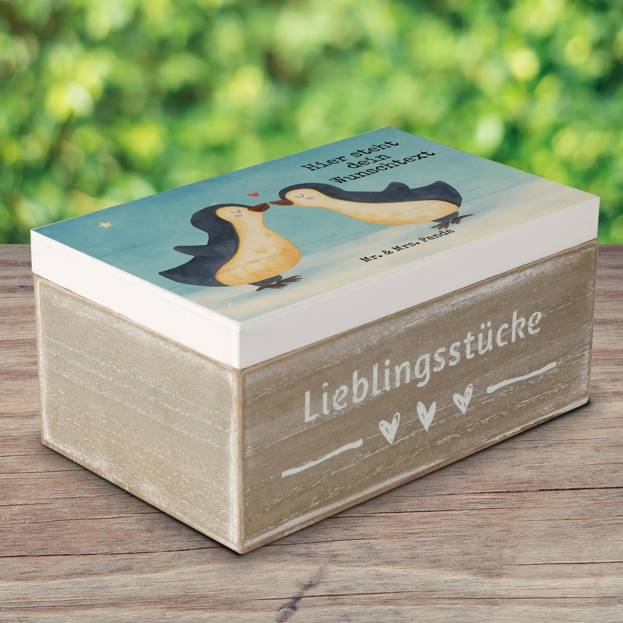 Personalisierte Schatztruhe Pinguin Liebe Design - 19 x 12 cm