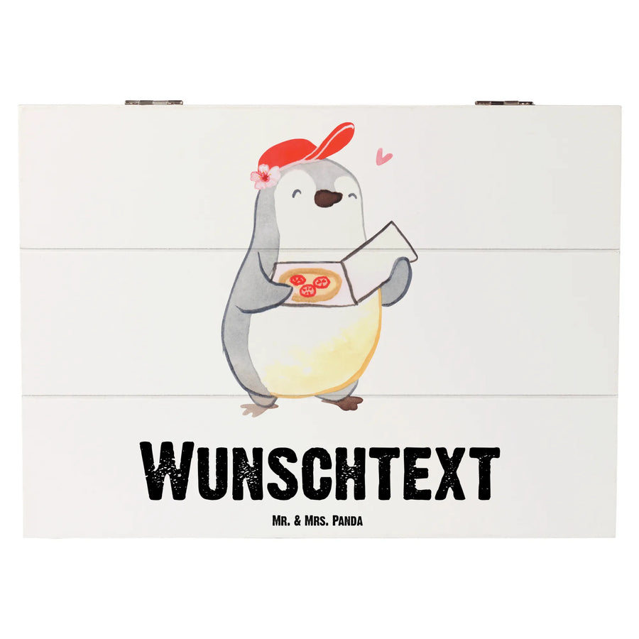 Die personalisierte Holzkiste mit dem Motif Pizzabäckerin mit Herz von Mr. & Mrs. Panda ist das perfekte Geschenk für alle, die den Pizzagenuss lieben!