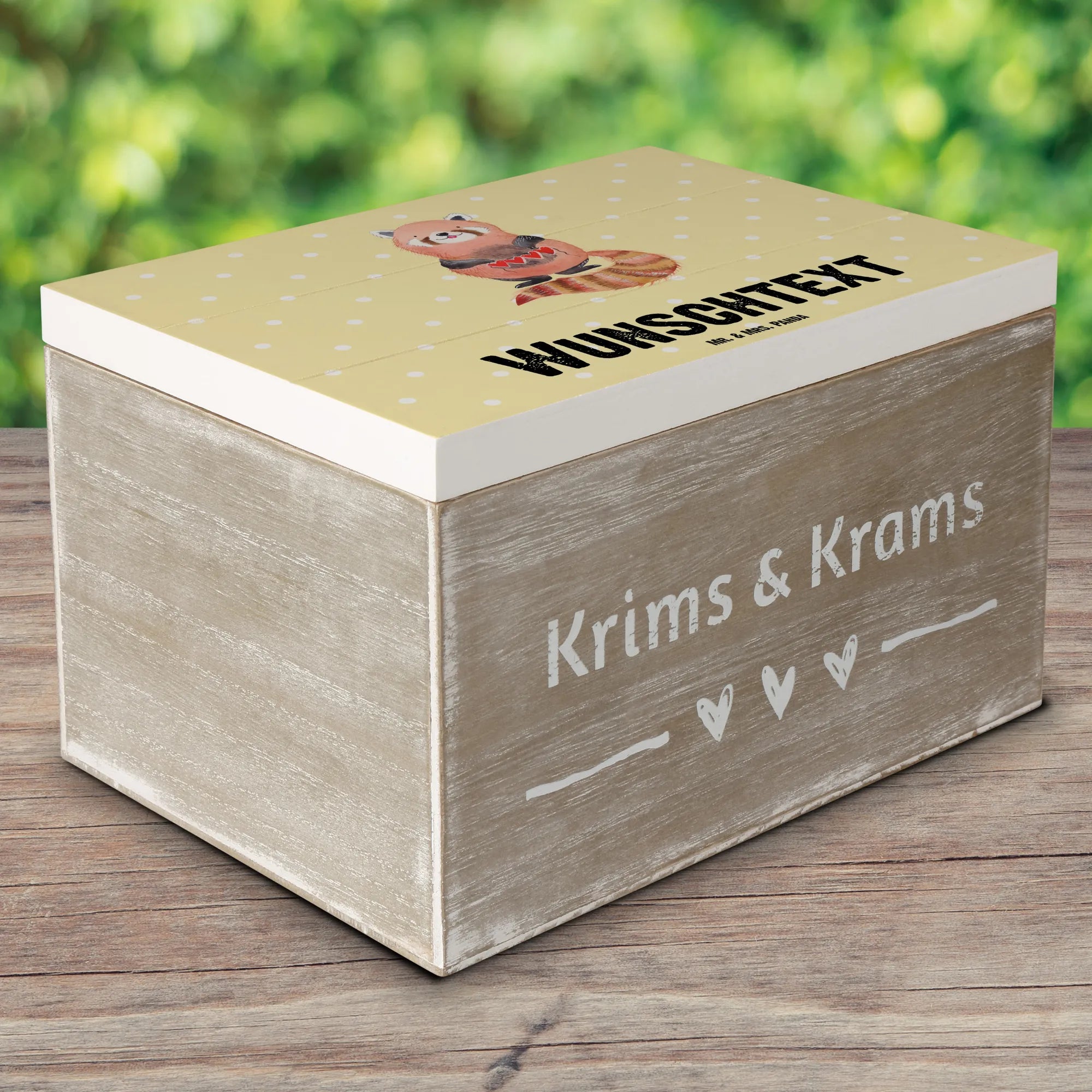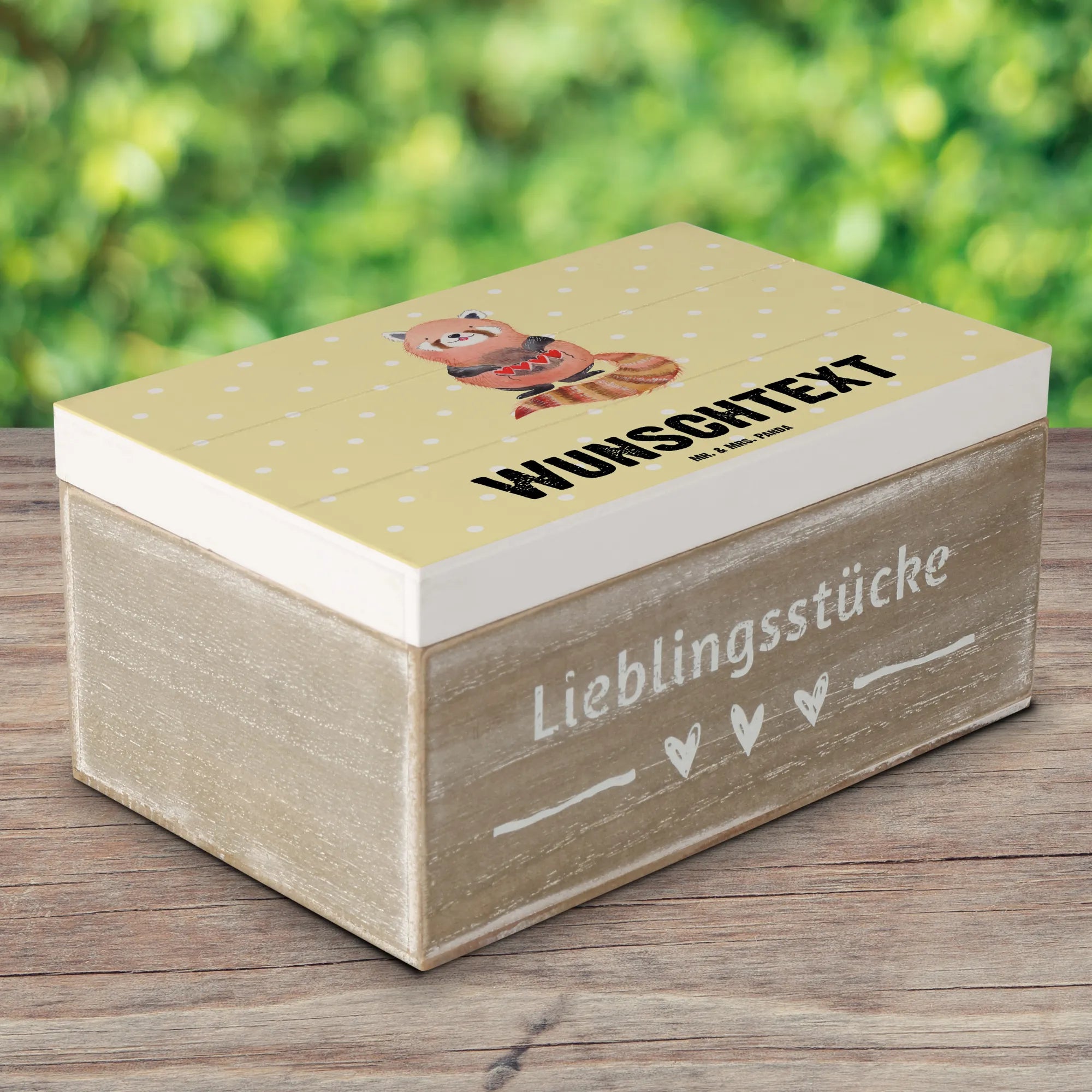 Deine personalisierte Holzkiste mit dem süßen roten Panda wird nicht nur zu einem praktischen Aufbewahrungsort, sondern auch zu einem dekorativen Element in deinem Zuhause, das eine Geschichte erzählt. Mach dir selbst oder jemandem, den du liebst, eine besondere Freude und erinnere dich an all die schönen Momente im Leben!