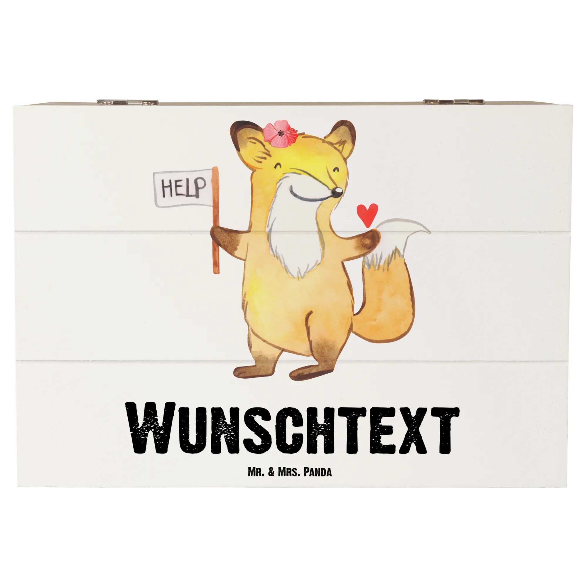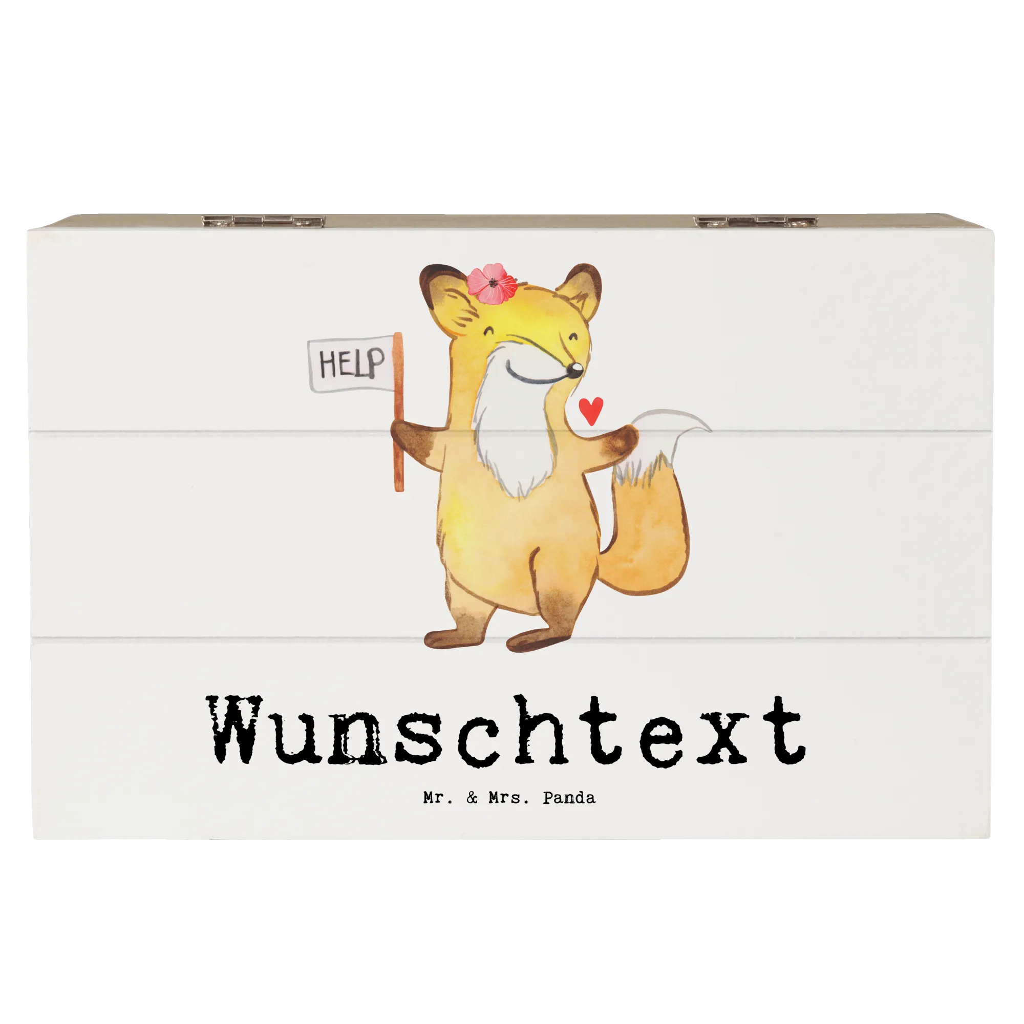 Der süße Fuchs, der auf der Kiste abgebildet ist, strahlt Wärme und Freundlichkeit aus und erinnert an die tolle Arbeit, die Sozialarbeiterinnen leisten. Zudem kannst du die Kiste mit deinem Wunschtext oder Wunschnamen personalisieren, was sie zu einem einzigartigen Geschenk für Jubiläen, Abschiede oder einfach als Dankeschön für deine Kollegin macht.
