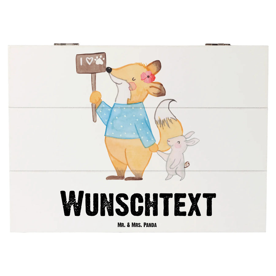 Entdecke die bezaubernde personalisierte Holzkiste "Tierschützerin mit Herz" von Mr. & Mrs. Panda! Diese wunderschöne Kiste ist nicht nur ein einzigartiges Aufbewahrungsobjekt, sondern auch ein besonderes Geschenk für alle, die Tiere lieben und sich für den Tierschutz einsetzen. Mit ihrem liebevoll handgezeichneten Motiv eines schützenden Fuchses, der einen kleinen Hasen an der Hand hält, zaubert sie jedem ein Lächeln ins Gesicht. Der Fuchs, ausgestattet mit einem Schild, auf dem steht: "I love animals", symbolisiert die Herzensangelegenheit der Tierschützerinnen und Tierschützer in dieser Welt. Ein perfektes Geschenk für all deine tierliebenden Freunde und Bekannten!