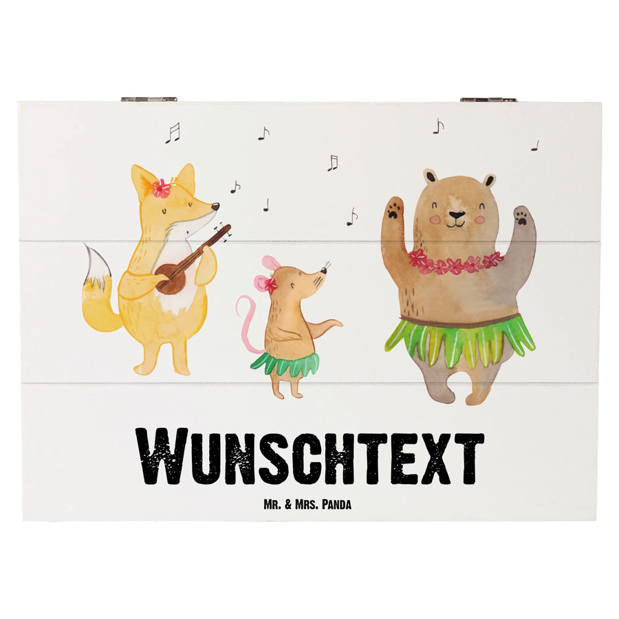 Die personalisierte Holzkiste "Waldtiere Aloha" von Mr. & Mrs. Panda ist das perfekte Geschenk für alle, die jemanden eine ganz besondere Freude machen möchten. Sie ist nicht nur eine wunderschöne Erinnerungskiste, sondern auch eine bezaubernde Dekokiste, die mit ihrem einzigartigen Design begeistert. Die niedlichen Waldtiere in Hula-Röcken tanzen fröhlich und bringen tropisches Flair in jedes Zuhause.