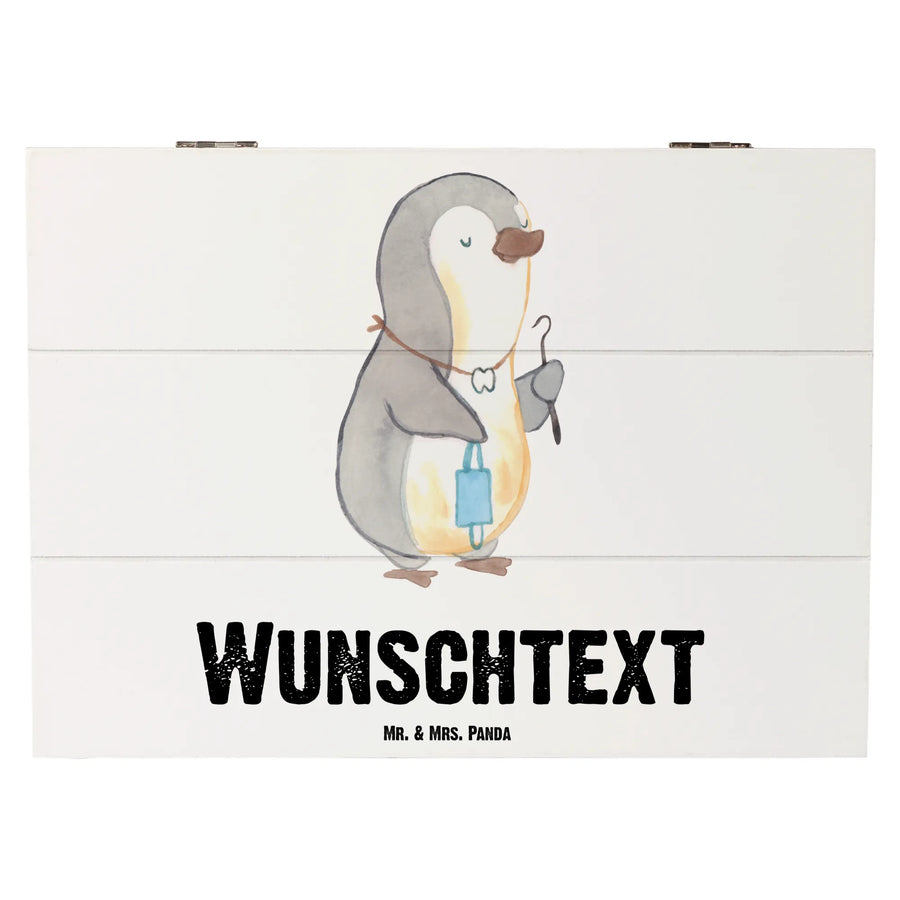 Entdecke die personalisierte Holzkiste "Zahnarzthelfer mit Herz" von Mr. & Mrs. Panda, ein einzigartiges Geschenk für alle, die im zahnmedizinischen Bereich arbeiten! Diese entzückende Kiste ist perfekt als Erinnerungsbox, Aufbewahrungsort für kleine Schätze oder als stilvolle Geschenkbox für Kollegen.