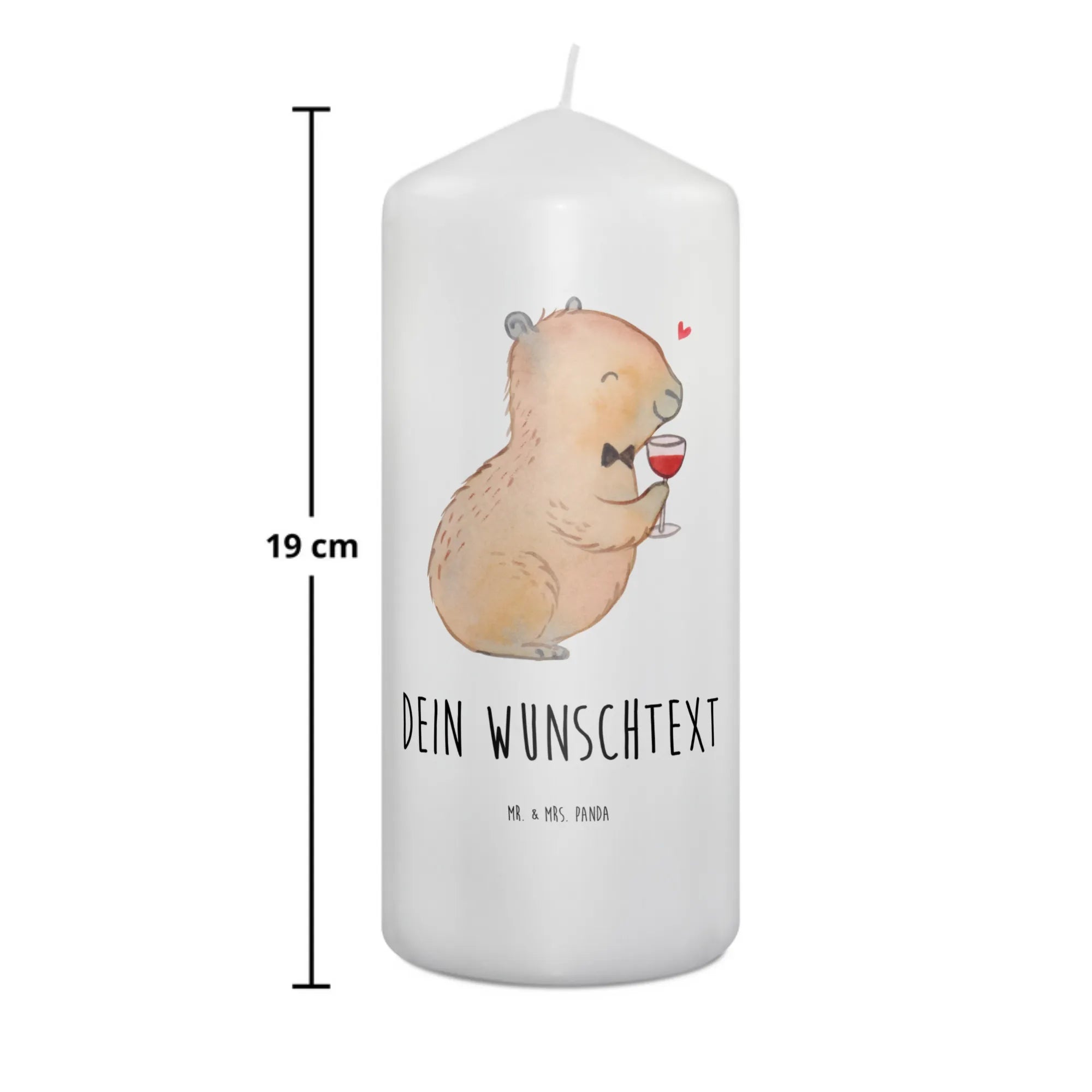 Die personalisierte Kerze mit dem aufmunternden Motiv von Mr. & Mrs. Panda, 'Capybara Wein', ist nicht nur ein hübsches Wohnaccessoire, sondern auch das ideale Geschenk für jeden Anlass.