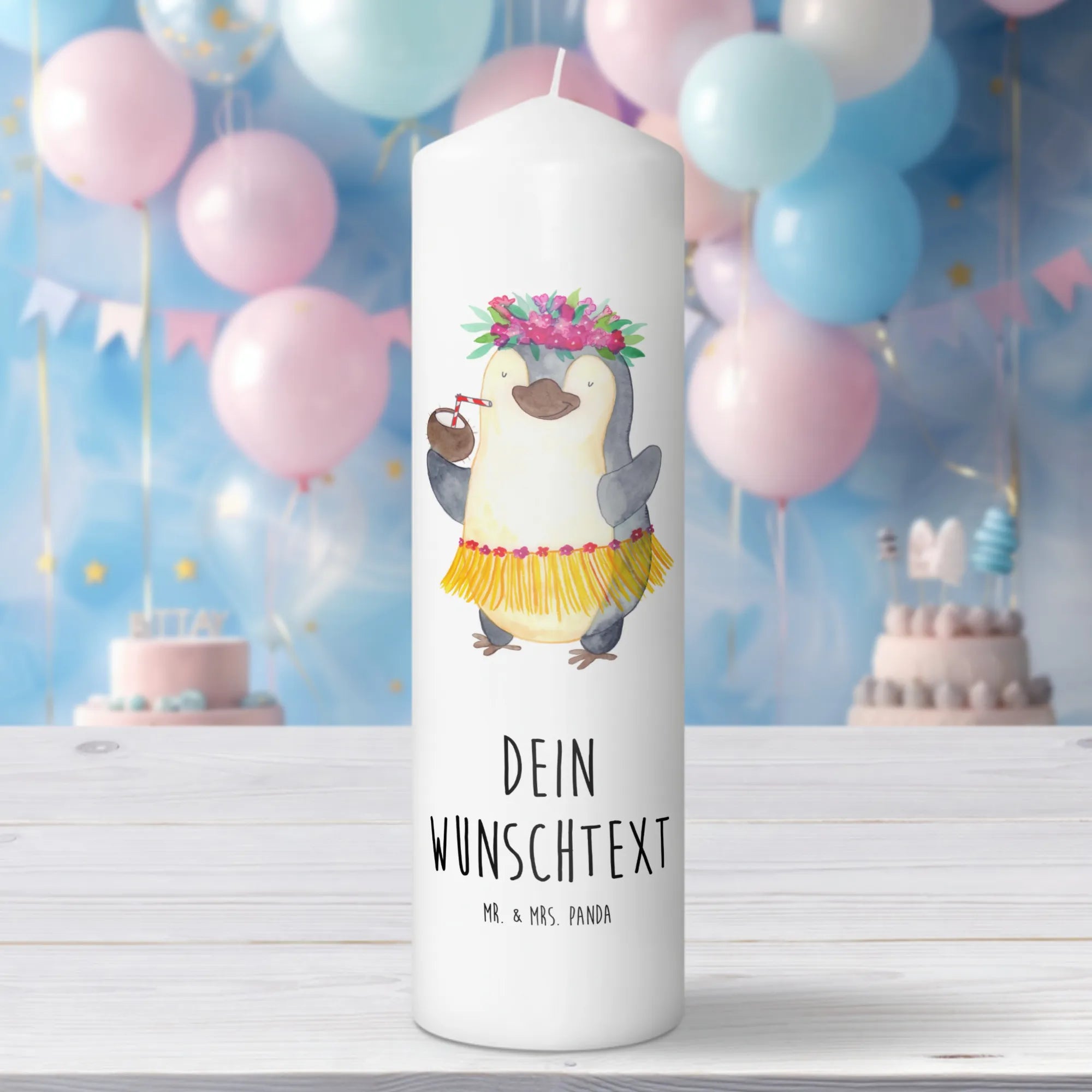 Die personalisierte Kerze mit dem fröhlichen Pinguin Kokosnuss Motiv aus der Pinguin-Kollektion von Mr. & Mrs. Panda ist das perfekte Geschenk für jeden Anlass!