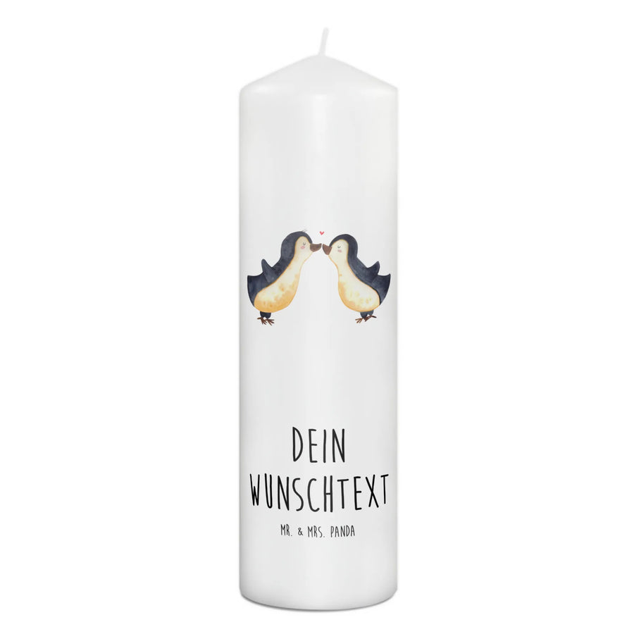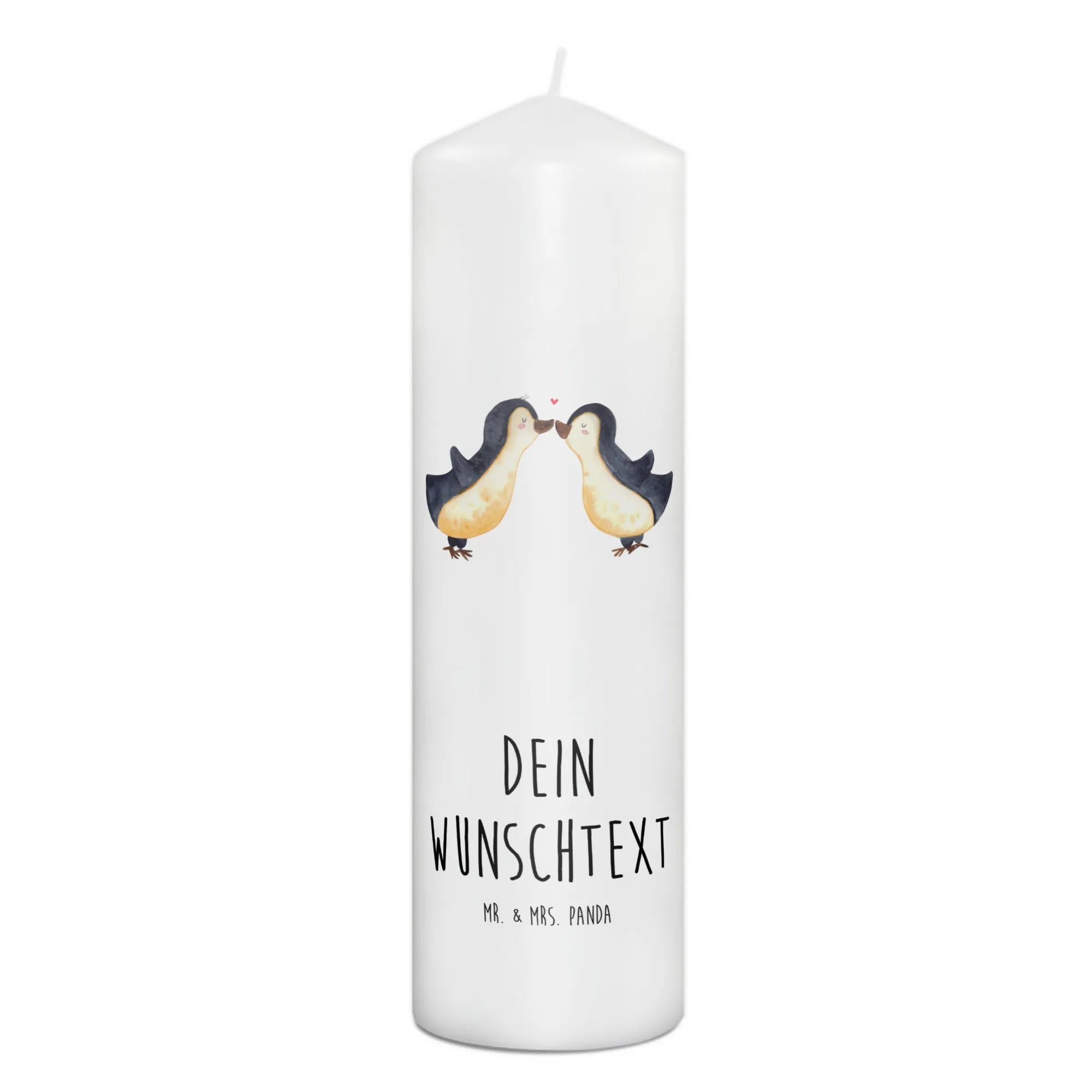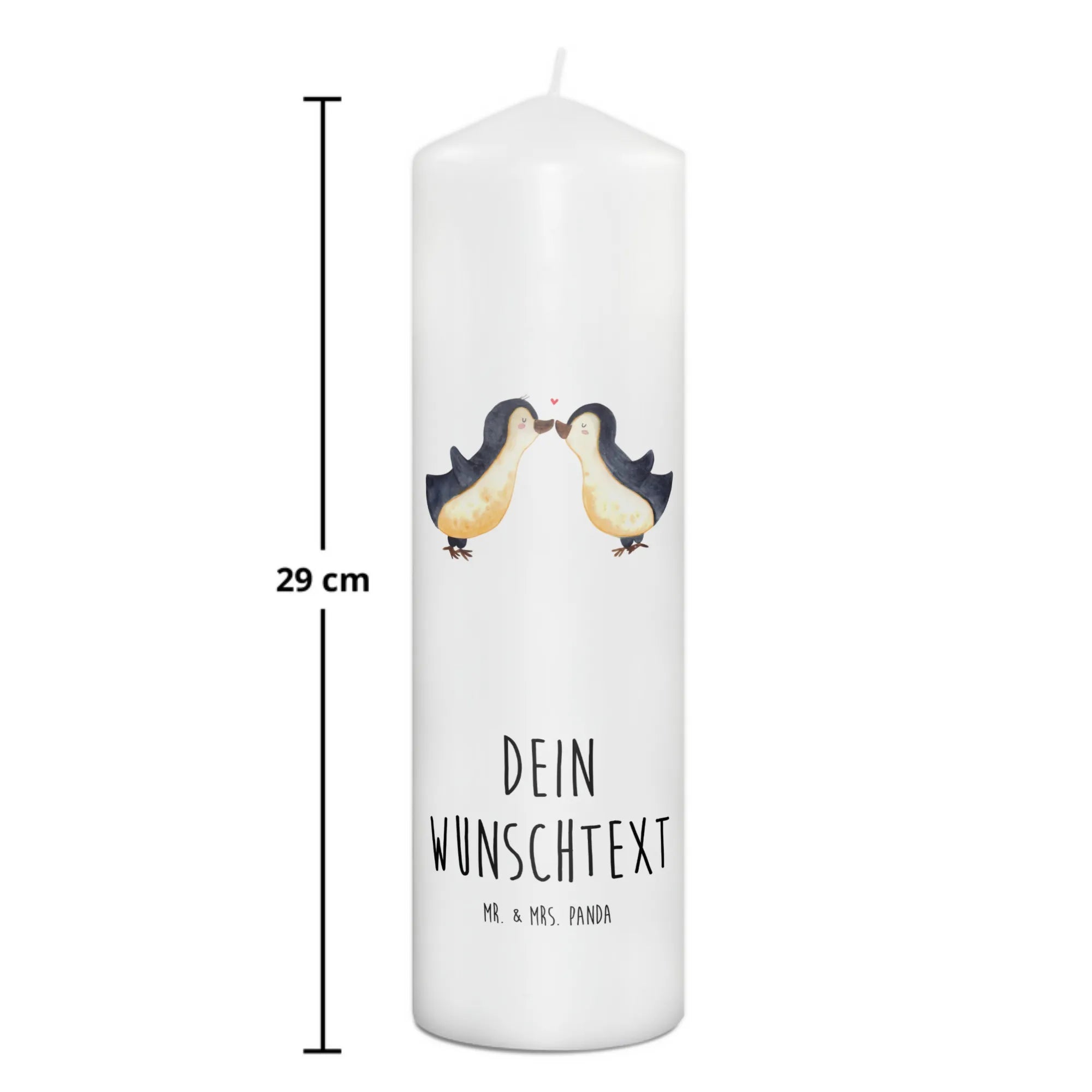Personalisierte Kerze Pinguine Kuss - 29 x 8 cm XL