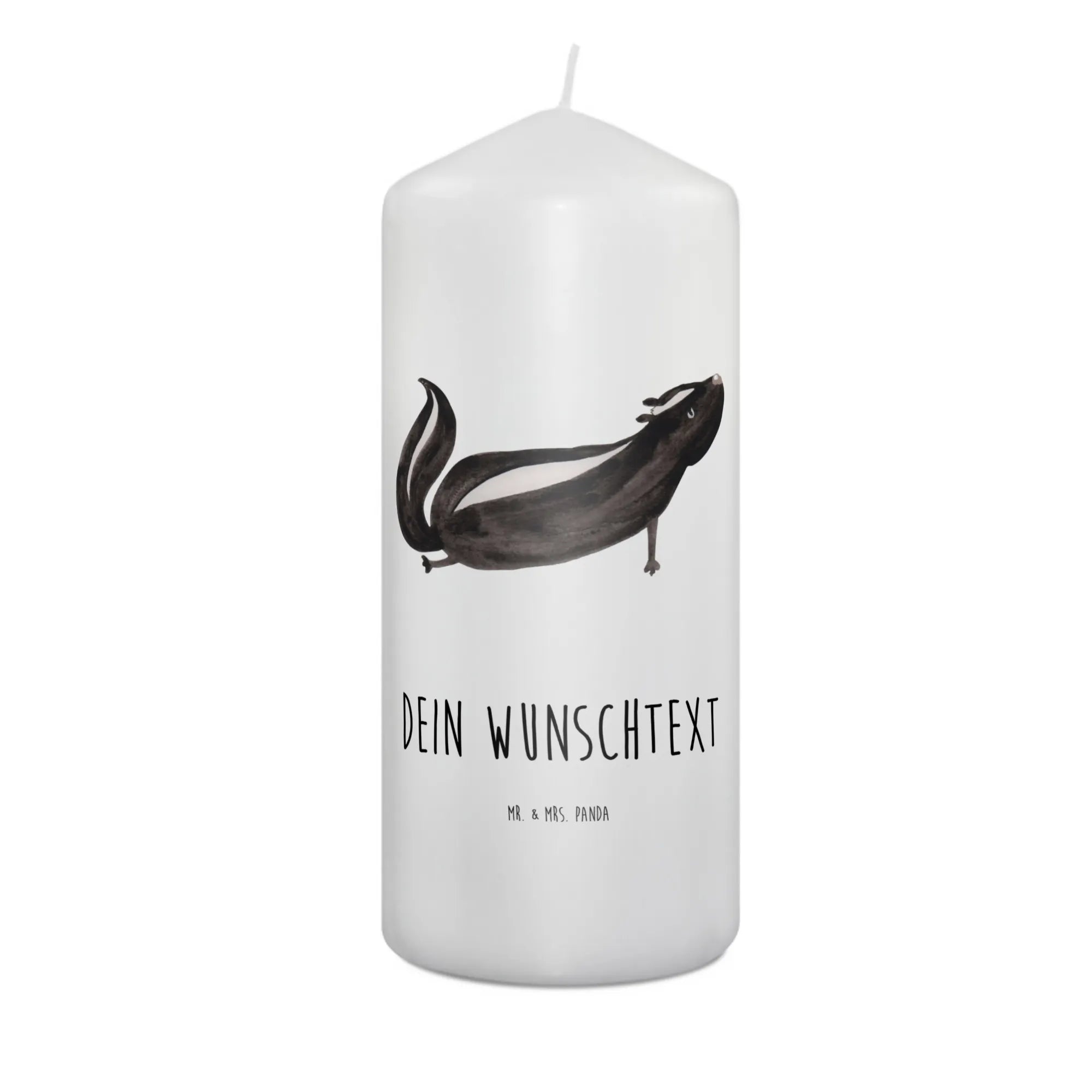 Zudem ist die Pflege kinderleicht: Verwende sanfte Reinigungsmittel und eine sanfte Handwäsche, um die Kerze in ihrem besten Zustand zu erhalten. Diese personalisierte Kerze ist nicht nur ein Geschenk, sondern auch eine liebevolle Erinnerung, die für immer bleibt. Sie ist Teil der wunderschönen Stinktier-Kollektion, die von Mr. & Mrs. Panda mit viel Liebe zum Detail entwickelt wurde und den treuen Freund von Mrs. Panda ehrt. Schenke Freude, Licht und Liebe mit dieser besonderen Kerze! Sie wird sowohl im Wohnbereich als auch bei besonderen Anlässen alle Herzen erfreuen und ein Lächeln ins Gesicht zaubern.