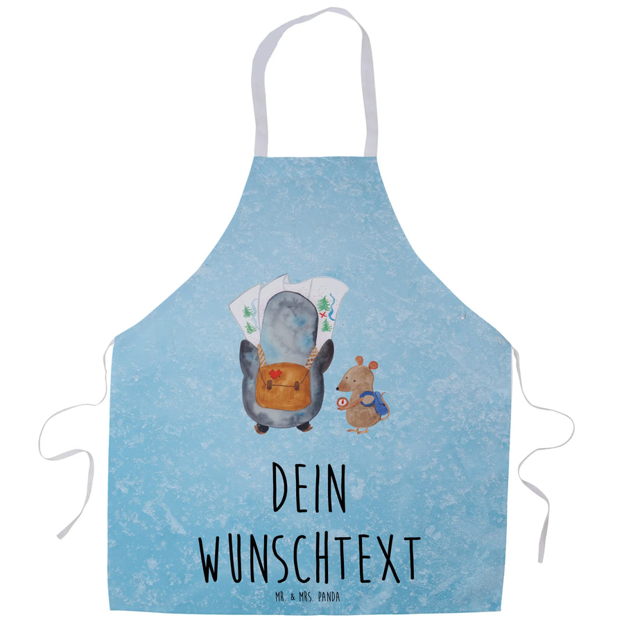 Personalisierte Kochschürze Pinguin & Maus Wanderer - Eisblau