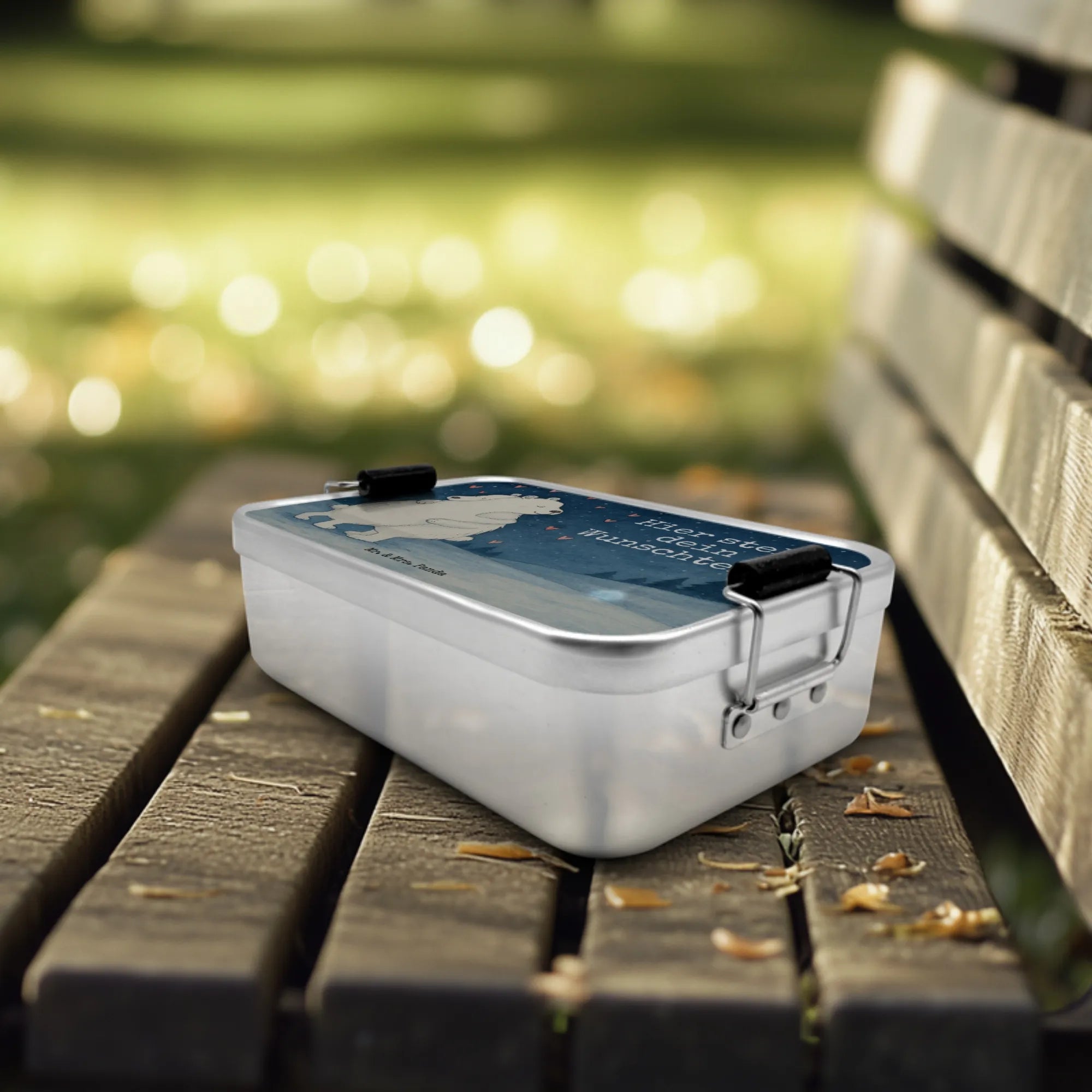 Verliebe dich in die personalisierte Metall Brotdose von Mr. & Mrs. Panda, die deine Pausenbrote zu einem echten Hingucker macht! Diese stilvolle Brotdose ist aus hochwertigem, langlebigem Aluminium gefertigt und hat die perfekten Maße von 173 mm x 118 mm x 55 mm für schmackhafte Snacks oder kleine Mahlzeiten. Ihr Design wird mit den einzigartigen und bezaubernden Motiven von Mr. & Mrs. Panda bedruckt und kann mit deinem persönlichen Wunschnamen oder Wunschtext versehen werden – so wird jede Lunchzeit zu einem besonderen Erlebnis! Die Brotdose hat nicht nur einen nostalgischen Retrolook, sondern bietet auch ausreichend Platz für ein komplettes Frühstück oder Mittagessen. Mit ihrem stabilen, leichten und benutzerfreundlichen Doppelverschluss von Klemmbügeln ist sie ideal für den Alltag. Zudem ist die Brotdose auf Lebensmittelechtheit geprüft und lässt sich kinderleicht mit der Hand reinigen – verwenden dabei einfach einen sanften, weichen Schwamm. Hol dir deine personalisierte Brotdose und mach jeden Snack zu etwas Einzigartigem!
