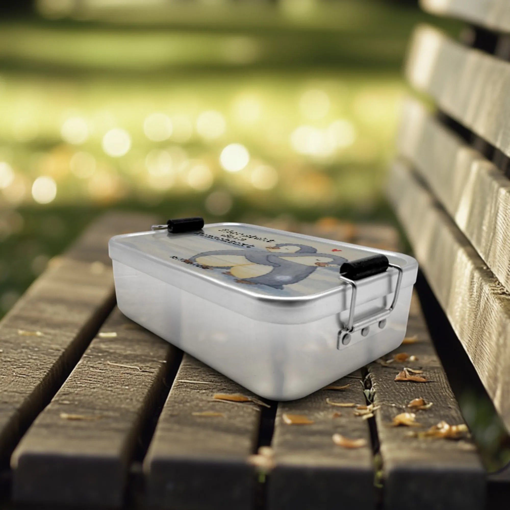 Personalisierte Metall Brotdose Pinguine Kuscheln Design