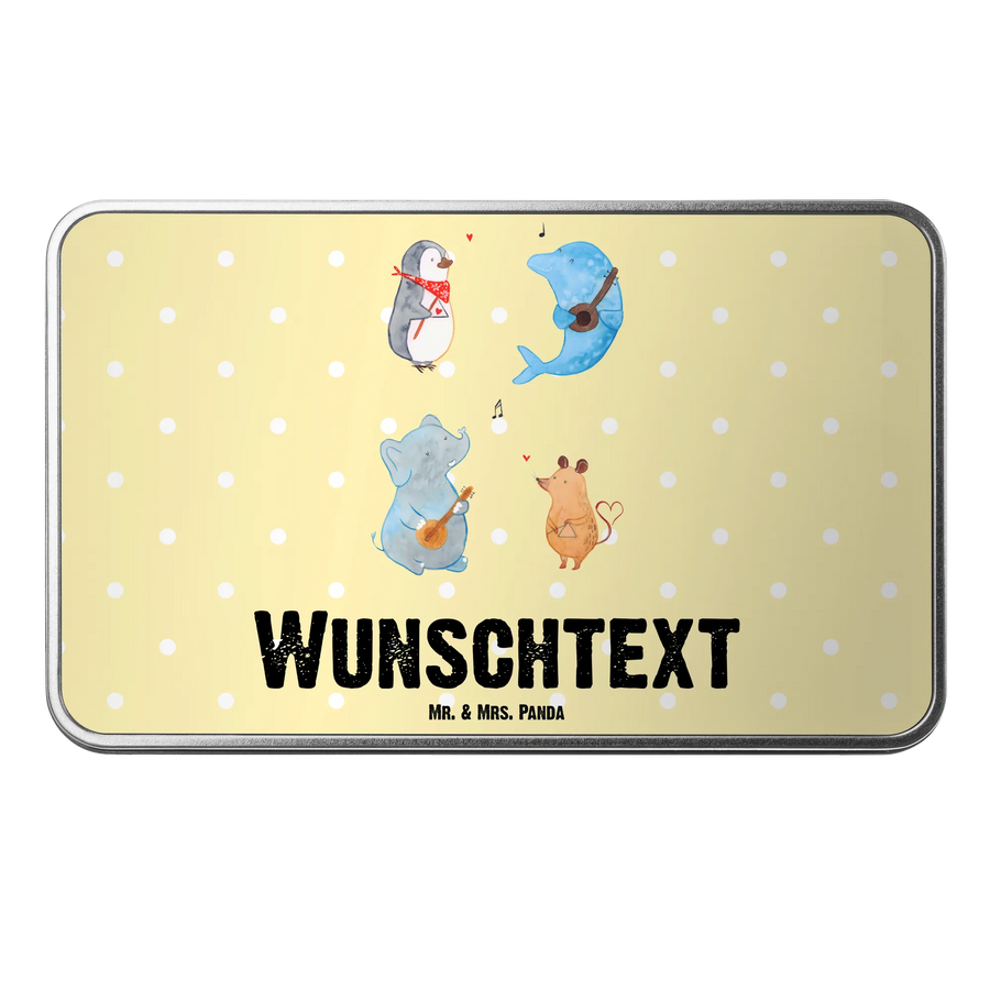 Die personalisierte Metalldose mit dem bezaubernden Big-Band-Motiv von Mr. & Mrs. Panda ist das perfekte Geschenk für Musikliebhaber jeden Alters! Ob für den Freund zur kommenden Geburtstagsparty oder die Schwester zum Einzug – diese Metalldose macht nicht nur durch ihr süßes Design mit einem Pinguin, einer Maus, einem Delfin und einem Elefanten, die fröhlich musizieren, Freude.