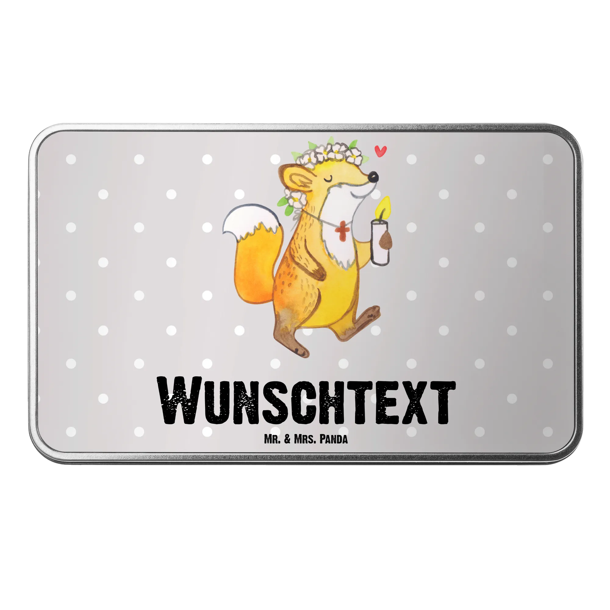 Entdecke die wunderschöne personalisierte Metalldose mit dem entzückenden Motiv 'Fuchs Kommunion Mädchen' von Mr. & Mrs. Panda! Diese Kiste ist der perfekte Begleiter zur Kommunion deines kleinen Mädchens und macht jedes Geschenk zu etwas ganz Besonderem. Mit einer liebevollen Illustration eines süßen Fuchs-Mädchens, das stolz mit einer Kerze und einer Halskette mit Kreuz auf dem Kopf durch den wichtigen Tag schreitet, vermittelt sie den Glauben und die Liebe, die zu solch einem besonderen Anlass gehören.