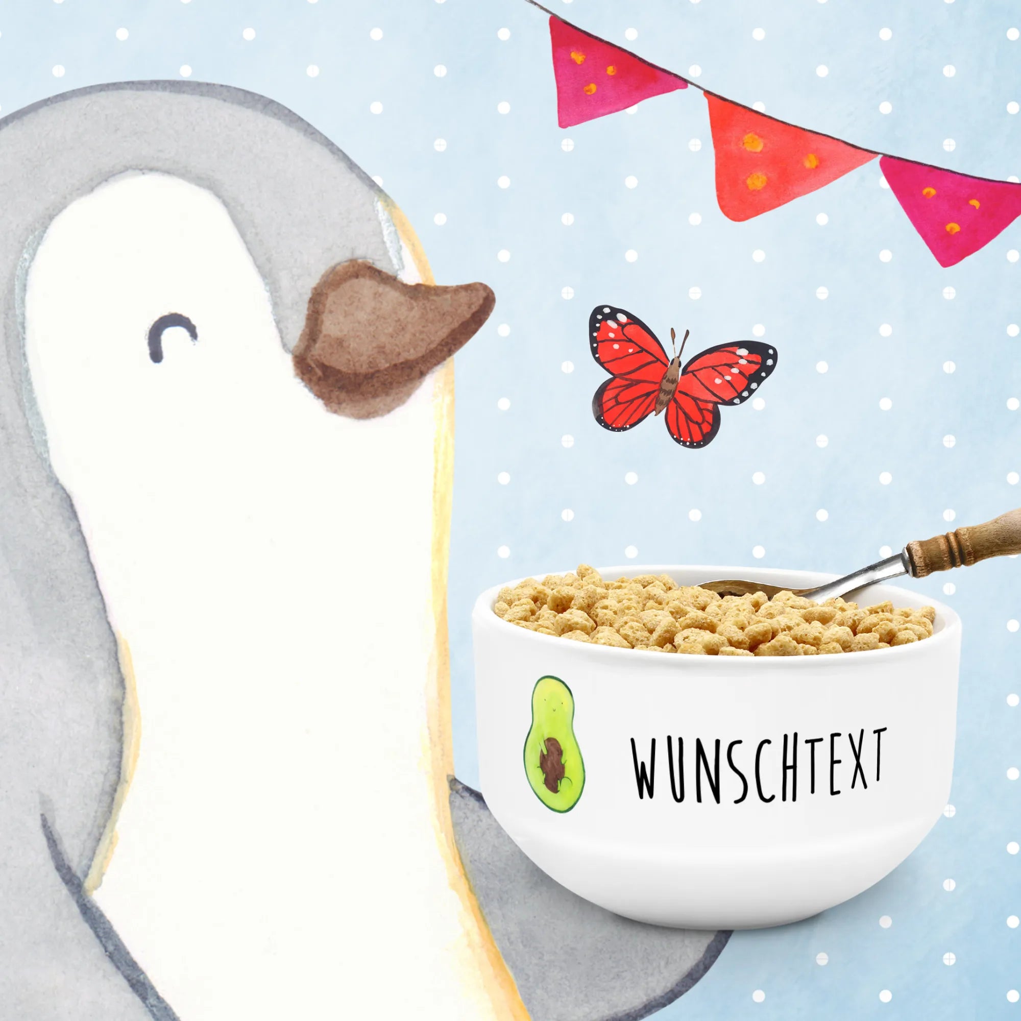 Die personalisierte Müslischale Avocado mit Kern von Mr. & Mrs. Panda ist das perfekte Geschenk für alle, die das Leben in vollen Zügen genießen! Mit ihrem einzigartigen und fröhlichen Design zaubert sie deinen Lieben ein Lächeln ins Gesicht – egal ob zum Geburtstag, zu Weihnachten oder einfach nur so zwischendurch. Die Müslischale ist aus hochwertigem Porzellan gefertigt, was bedeutet, dass sie lange wie neu bleibt. Der brillante, glänzende Aufdruck sorgt dafür, dass das niedliche Avocado-Motiv mit ihrem herzlichen Spruch 'Es sind die kleinen, unscheinbaren Dinge, die das Leben so wundervoll machen.' immer im Mittelpunkt stehen wird.