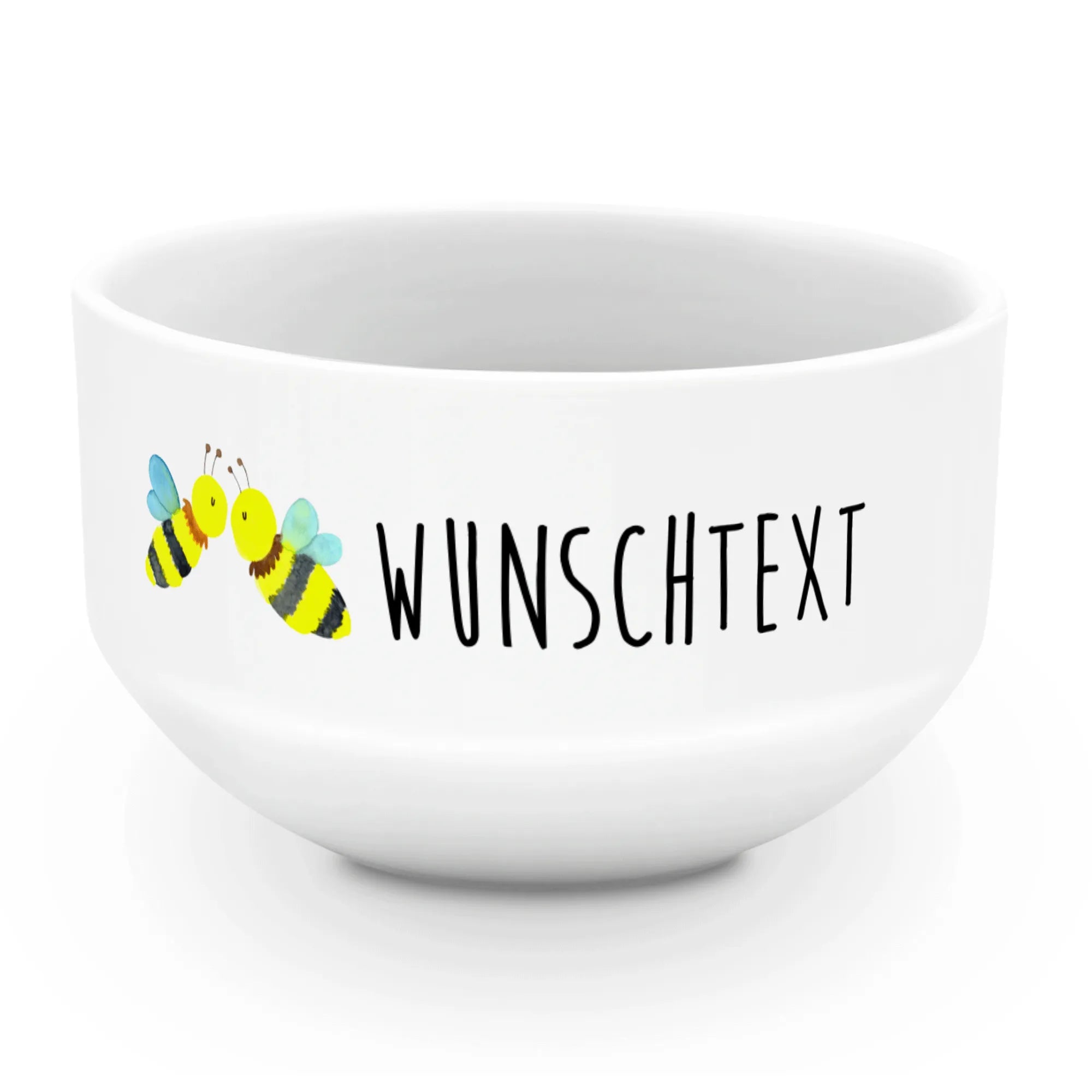 Das liebevoll handgezeichnete Motiv „Biene Liebe“ zeigt zwei süße Bienen, die sich innig küssen und damit symbolisch für Liebe und Zuneigung stehen. Mit dem lustigen Slogan "Bee mine" wird die Schüssel zu einem ganz besonderen Geschenk, das sich perfekt für romantische Anlässe wie Hochzeiten, Jahrestage oder Valentinstag eignet.