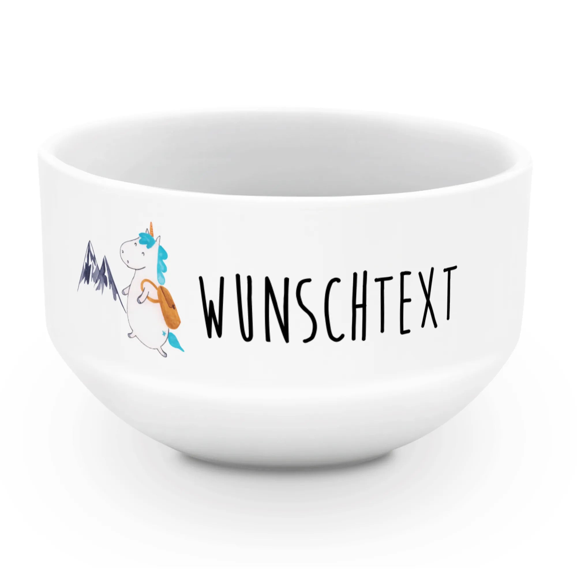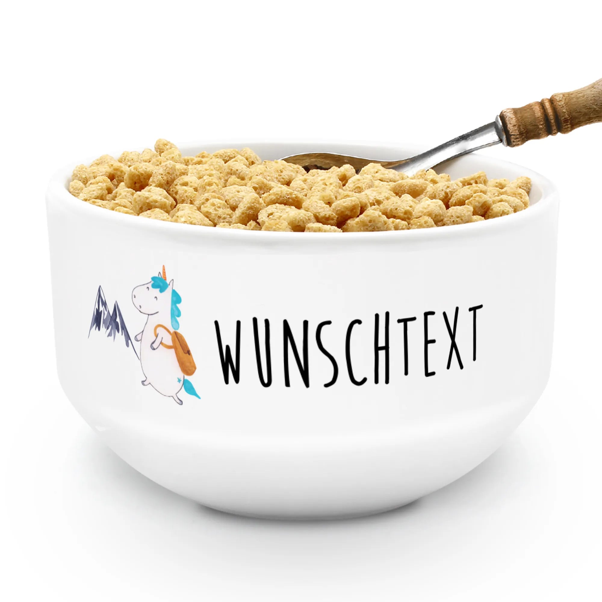 Entdecke die zauberhafte, personalisierte Müslischale Einhorn Bergsteiger von Mr. & Mrs. Panda! Diese liebevoll gestaltete Keramikschüssel ist nicht nur ein wahrer Blickfang in deiner Küche, sondern auch das perfekte Geschenk für jeden Einhorn-Fan und Abenteuerlustige. Die Schüssel überzeugt durch ihren brillanten, glänzenden Aufdruck und ist mit dem niedlichen Motiv eines Einhorns, das mit Rucksack in die Berge wandert, verziert.