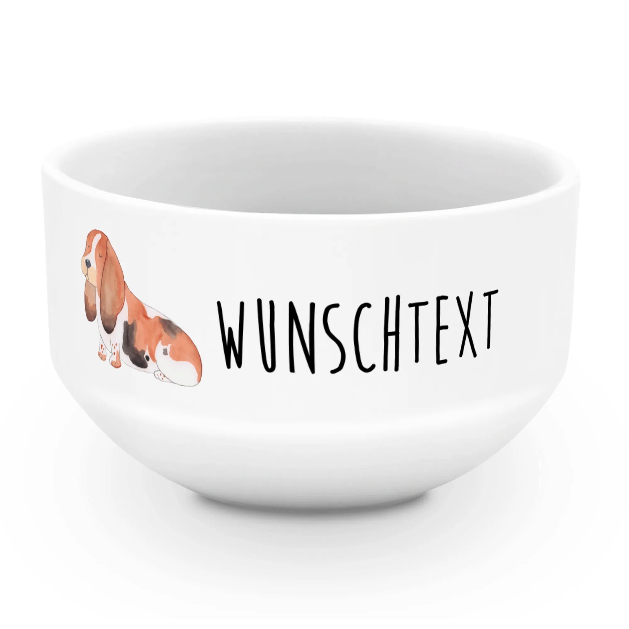 Wenn du auf der Suche nach einer einzigartigen Müslischale bist, die nicht nur funktional ist, sondern auch dein Herz erfreut, dann ist die Personalisierte Müslischale mit dem Basset Hound Motiv genau das Richtige für dich. Sie ist ideal für dein Frühstück oder die gemütliche Kaffeepause und wird sicherlich der Star in deiner Küche sein. Lass deiner Kreativität freien Lauf und gestalte deine eigene Müslischale mit Namen oder einem Spruch - ein Geschenk, das jeder Hundeliebhaber schätzen wird.