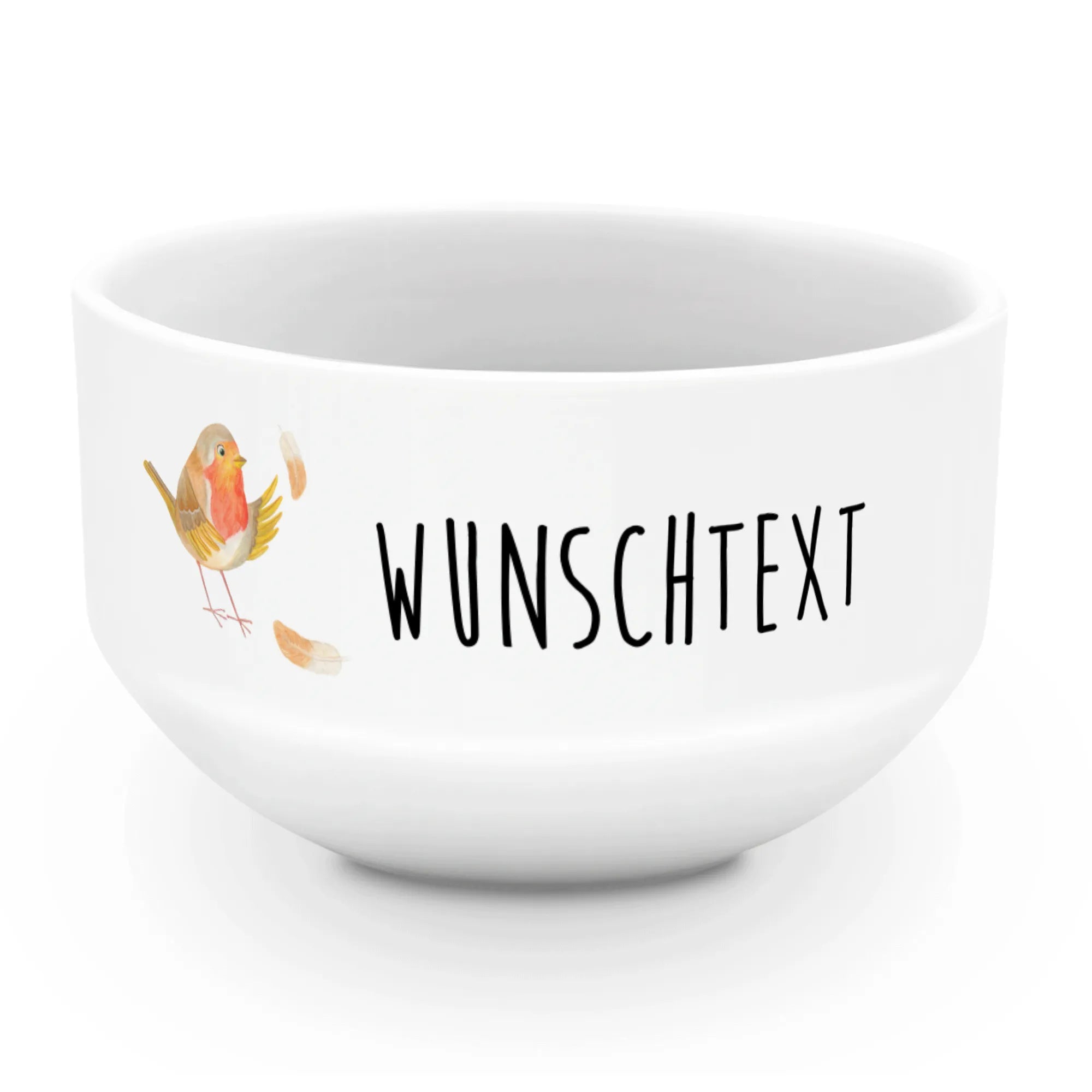 Personalisierte Müslischale Rotkehlchen mit Federn