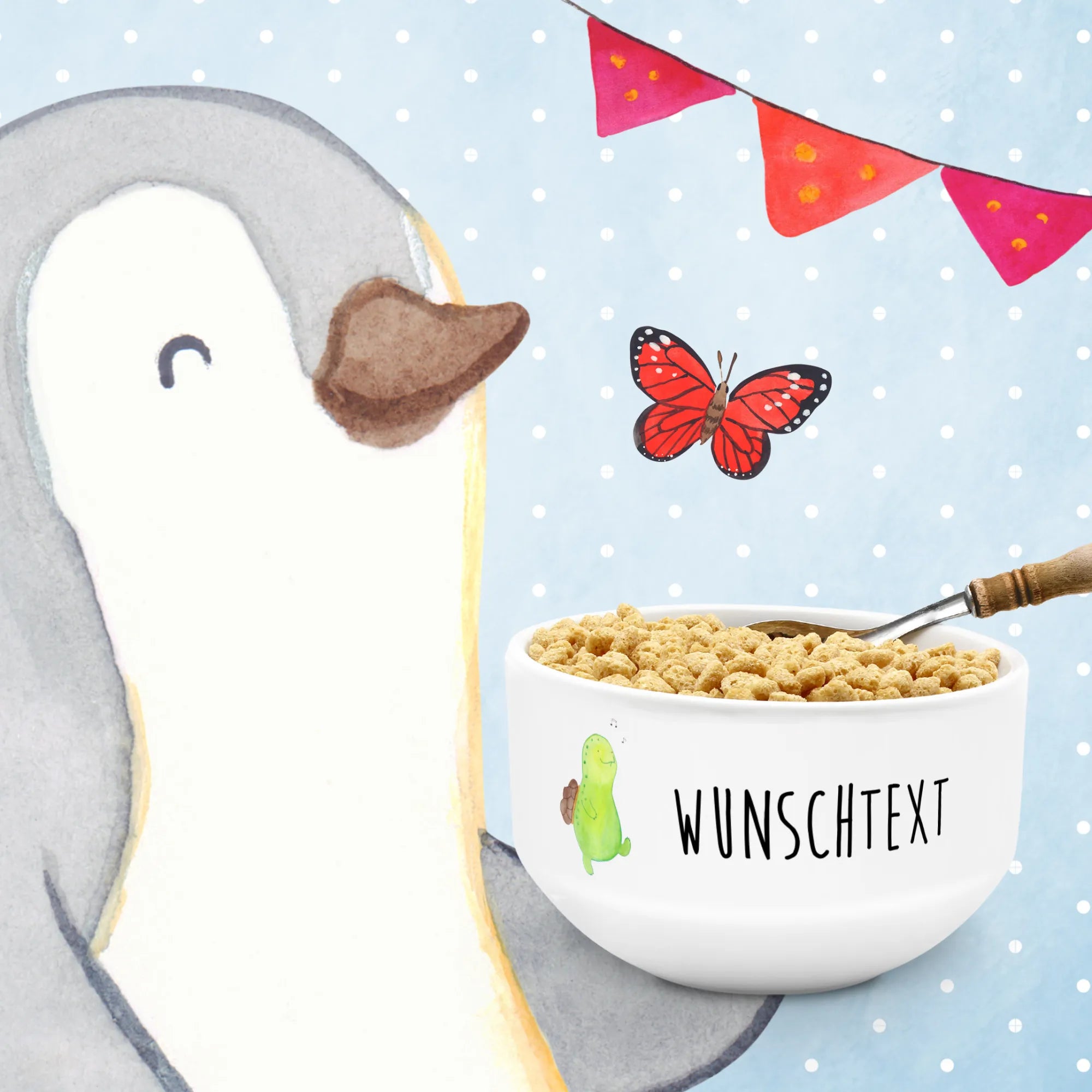 Entdecke die fröhliche Personalisierte Müslischale »Schildkröte pfeift« aus der einzigartigen Schildkröten Kollektion von Mr. & Mrs. Panda!