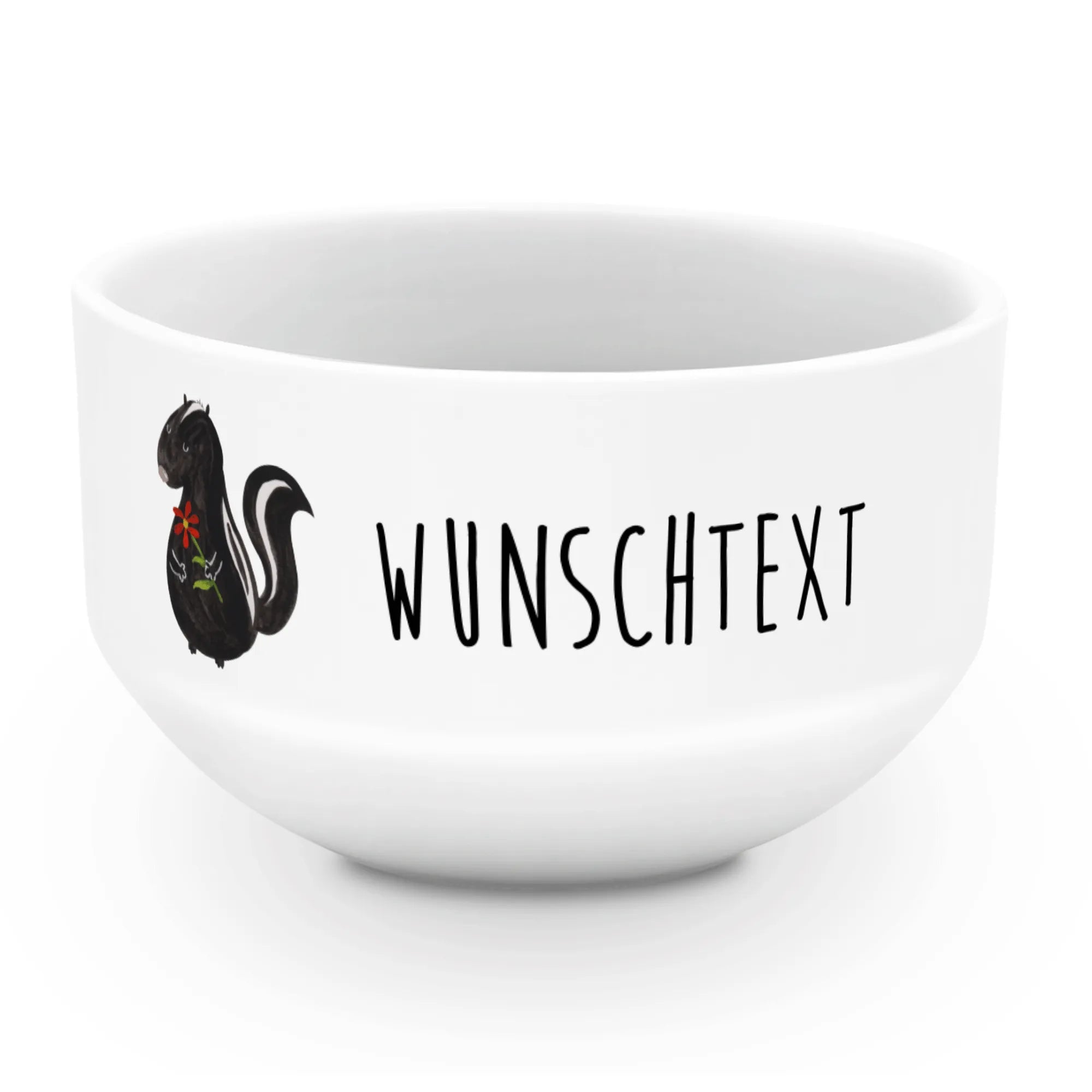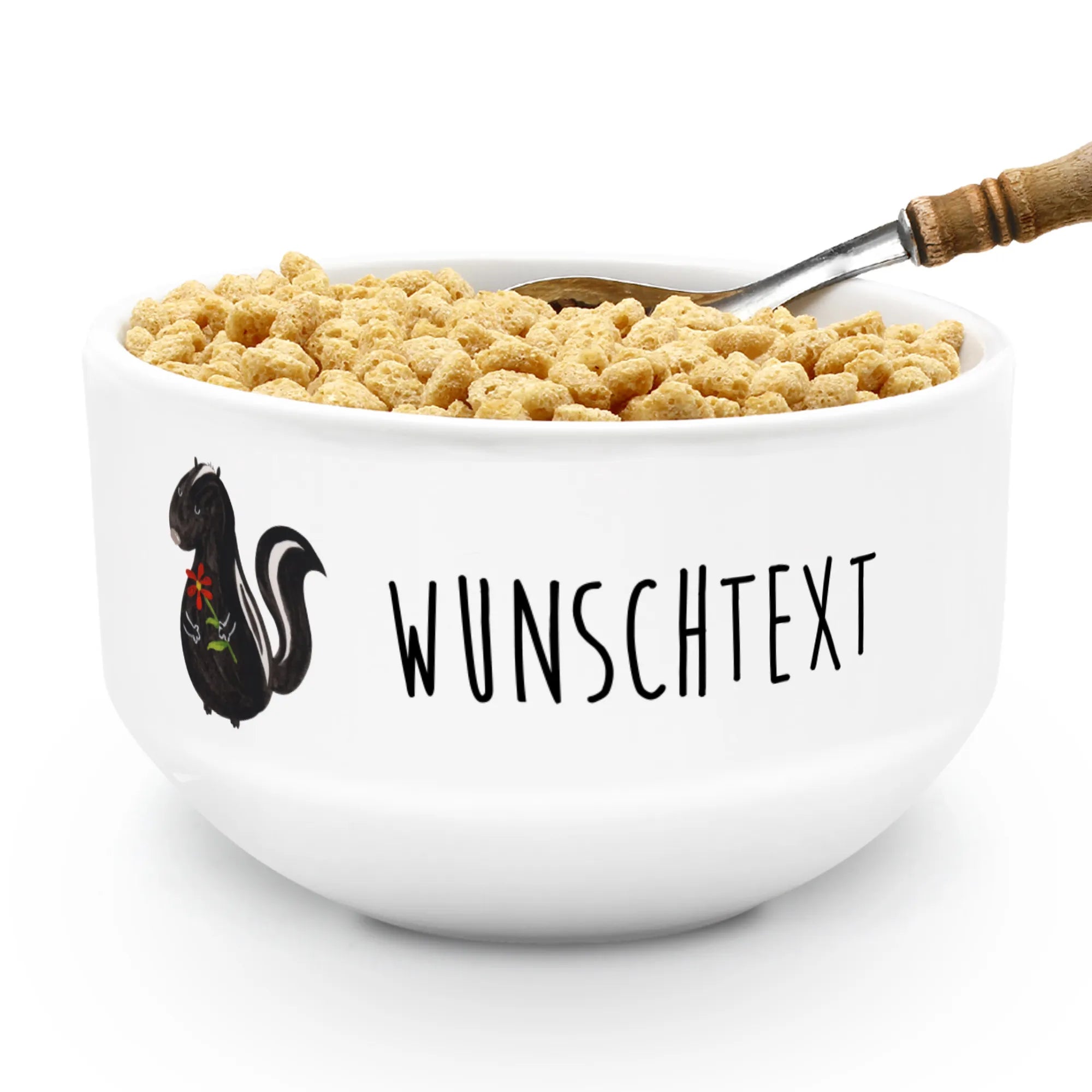 Entdecke die zauberhafte, personalisierte Müslischale mit dem süßen Stinktier-Motiv! Diese besondere Schüssel aus hochwertigem Porzellan ist nicht nur optisch ein echter Hingucker, sondern auch ein praktischer Begleiter für dein Frühstück, dein Dessert oder als Snackschale.