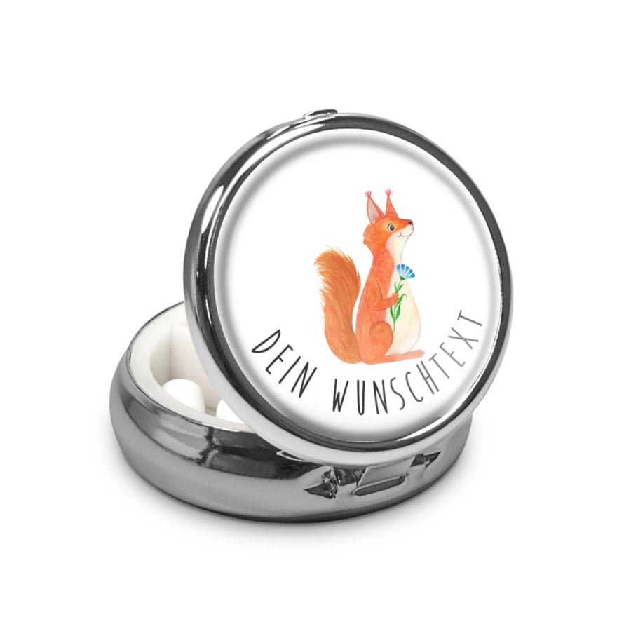 Personalisierte Pillendose Eichhörnchen Blume