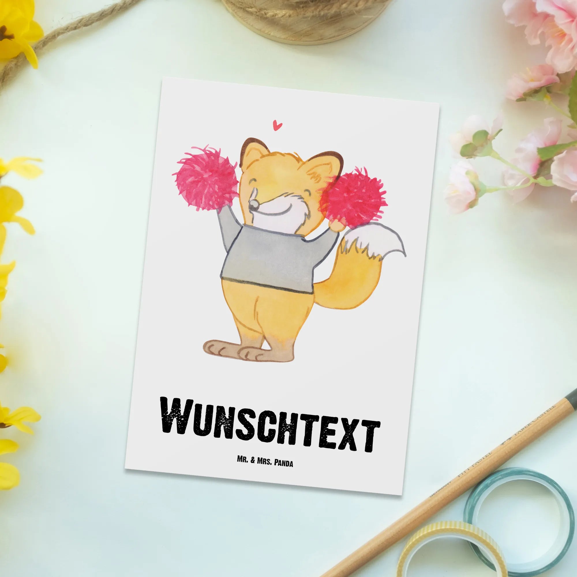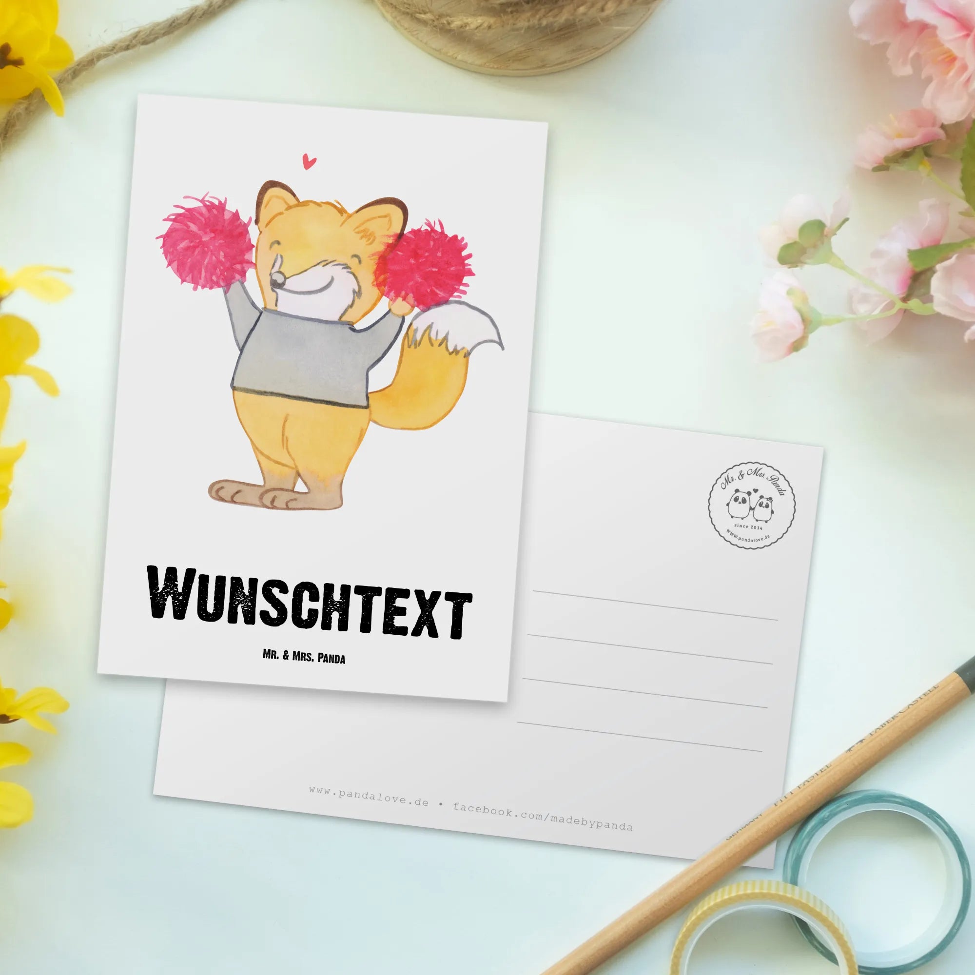 Personalisierte Postkarte „Fuchs Cheerleader Tage“ – Ein fröhliches Geschenk für alle Cheerleader, Trainerinnen und Sportfans! 🐾🎀