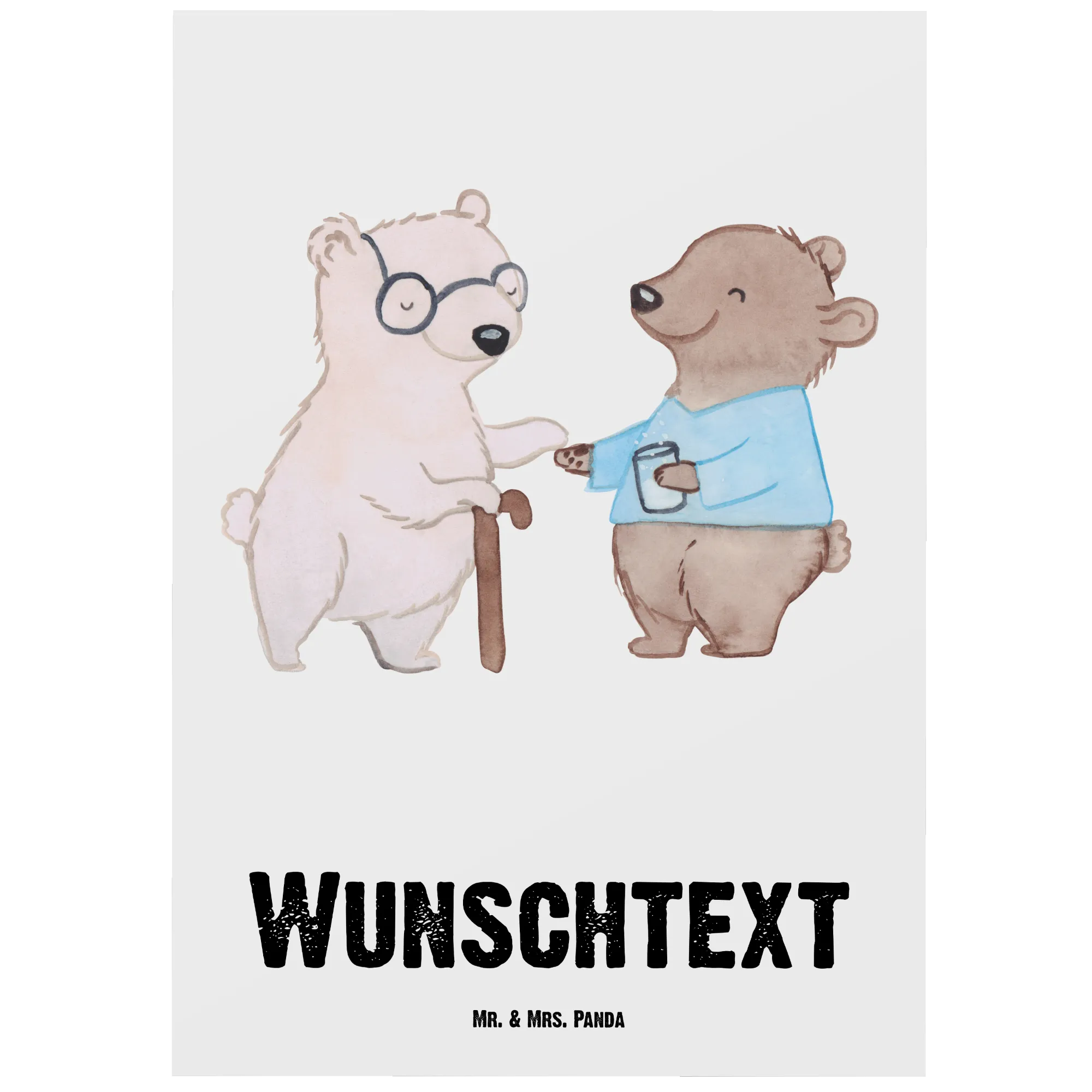 Die personalisierte Postkarte "Altenpfleger mit Herz" von Mr. & Mrs. Panda ist das ideale Geschenk für alle, die in der Altenpflege tätig sind oder gerade ihre Ausbildung abgeschlossen haben. Diese einzigartige Karte, bedruckt auf hochwertigem 300 Gramm Karton, begeistert durch ihr süßes Design und den witzigen Spruch "Du bist nur ein halber Mensch, wenn du kein Altenpfleger bist!"