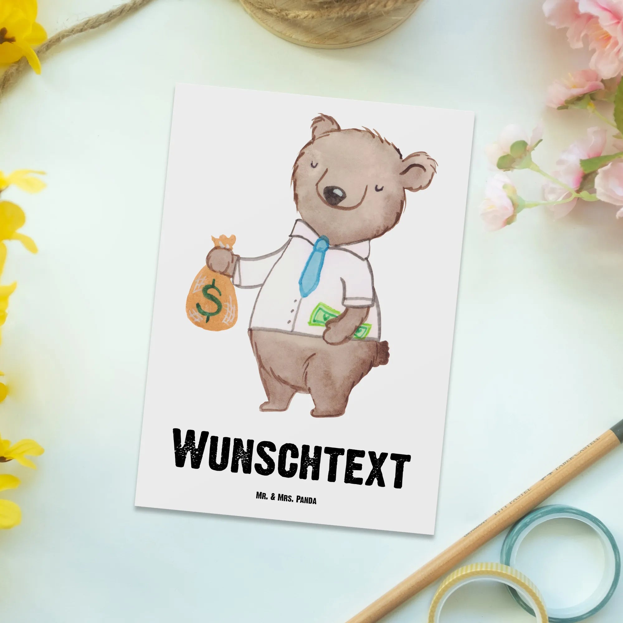 Personalisierte Postkarte „Bänker mit Herz“ von Mr. & Mrs. Panda