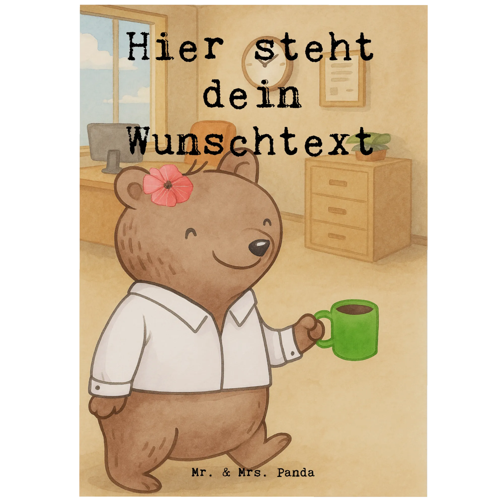 In einer Welt voller Blüten und Farben strahlt unser süßer Bär als Beamtin aus Leidenschaft. Sie verkörpert das Beamtentum mit einem Herzen, das für den öffentlichen Dienst schlägt. Ihr Studium war nur der Anfang; mit engagierter Hingabe und Verantwortung steht sie im Amt, um das Leben der Menschen zu verbessern. "Beamtin aus Leidenschaft" ist nicht nur ein Motto, sondern ein Lebensgefühl. Unser Bär zeigt, dass wahre Leidenschaft für den Dienst an den Mitmenschen ansteckend ist, und ermutigt alle, ihre Träume zu verfolgen und mit viel Freude ihre Aufgaben zu erfüllen. Mit ihrem charmanten Lächeln und der inneren Stärke ist sie ein Beispiel dafür, was es bedeutet, mit Hingabe und Freude in einer oft ernsten Welt zu wirken.
