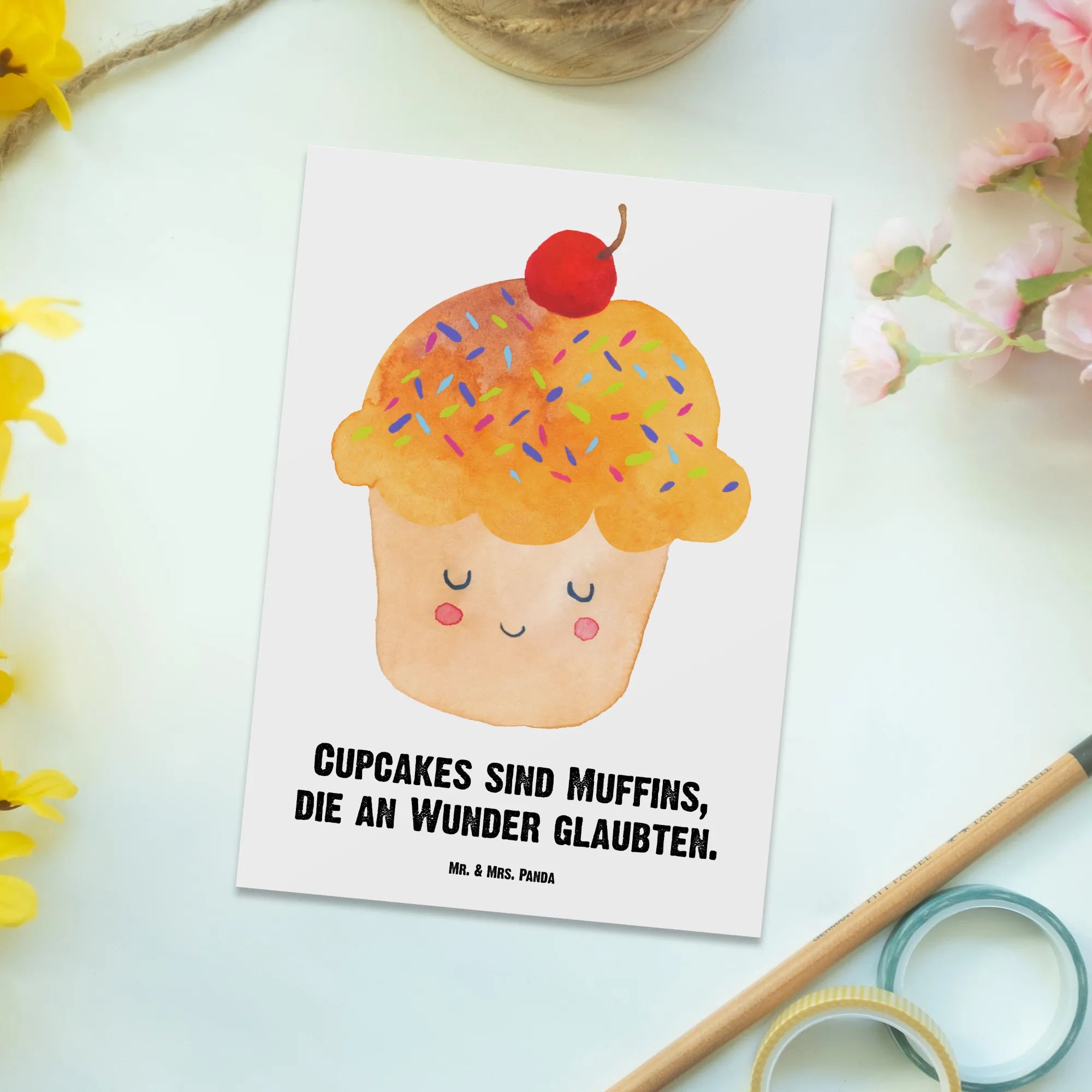 Entdecke die perfekte Möglichkeit, Freude zu verbreiten und liebevolle Botschaften zu verschicken mit unserer personalisierten Postkarte 'Cupcake' aus der zauberhaften Small World Kollektion von Mr. & Mrs. Panda. Mit dem niedlichen Cupcake-Motiv und dem Slogan 'Cupcakes sind Muffins, die an Wunder glaubten.' zauberst du jedem ein Lächeln ins Gesicht und machst jeden besonderen Moment unvergesslich.