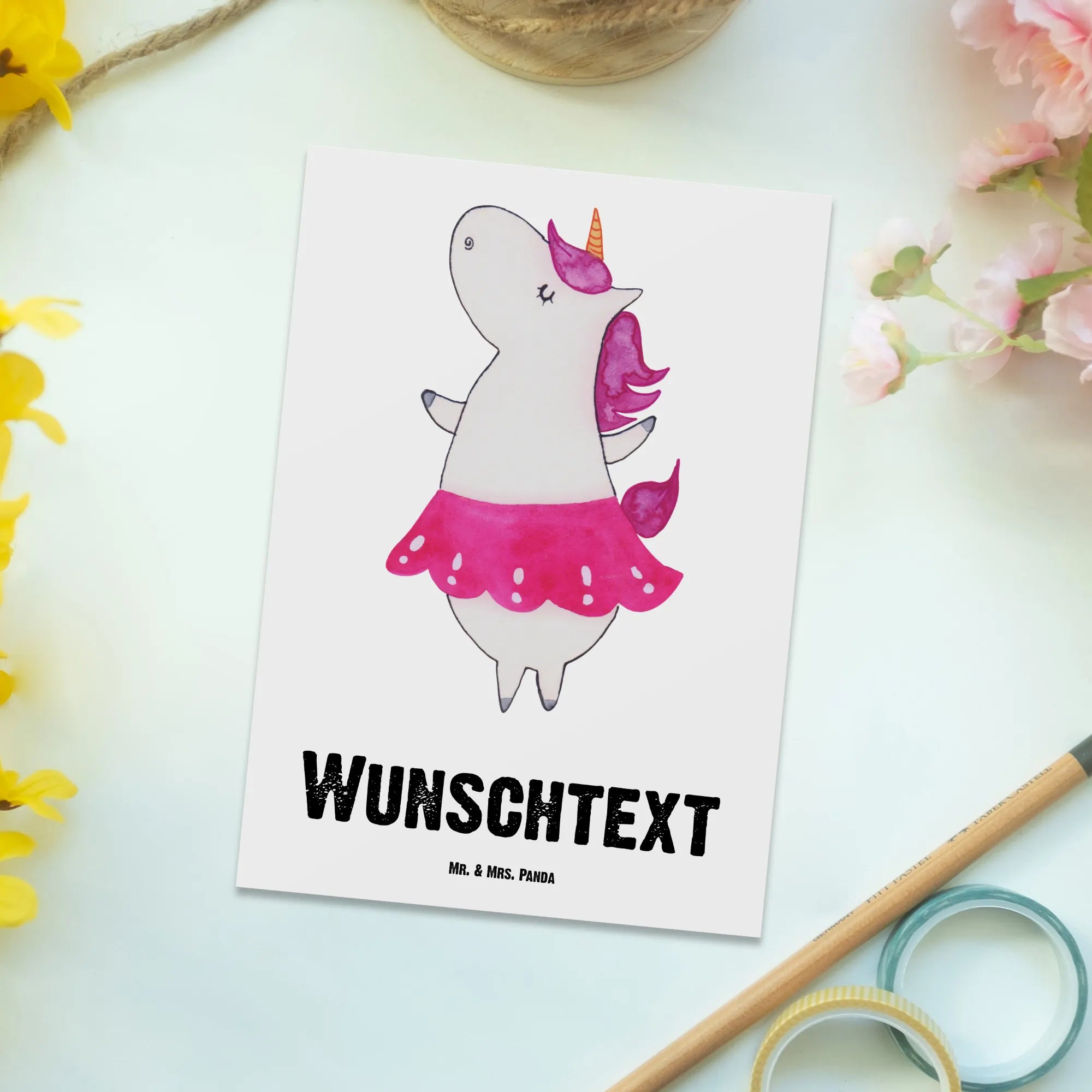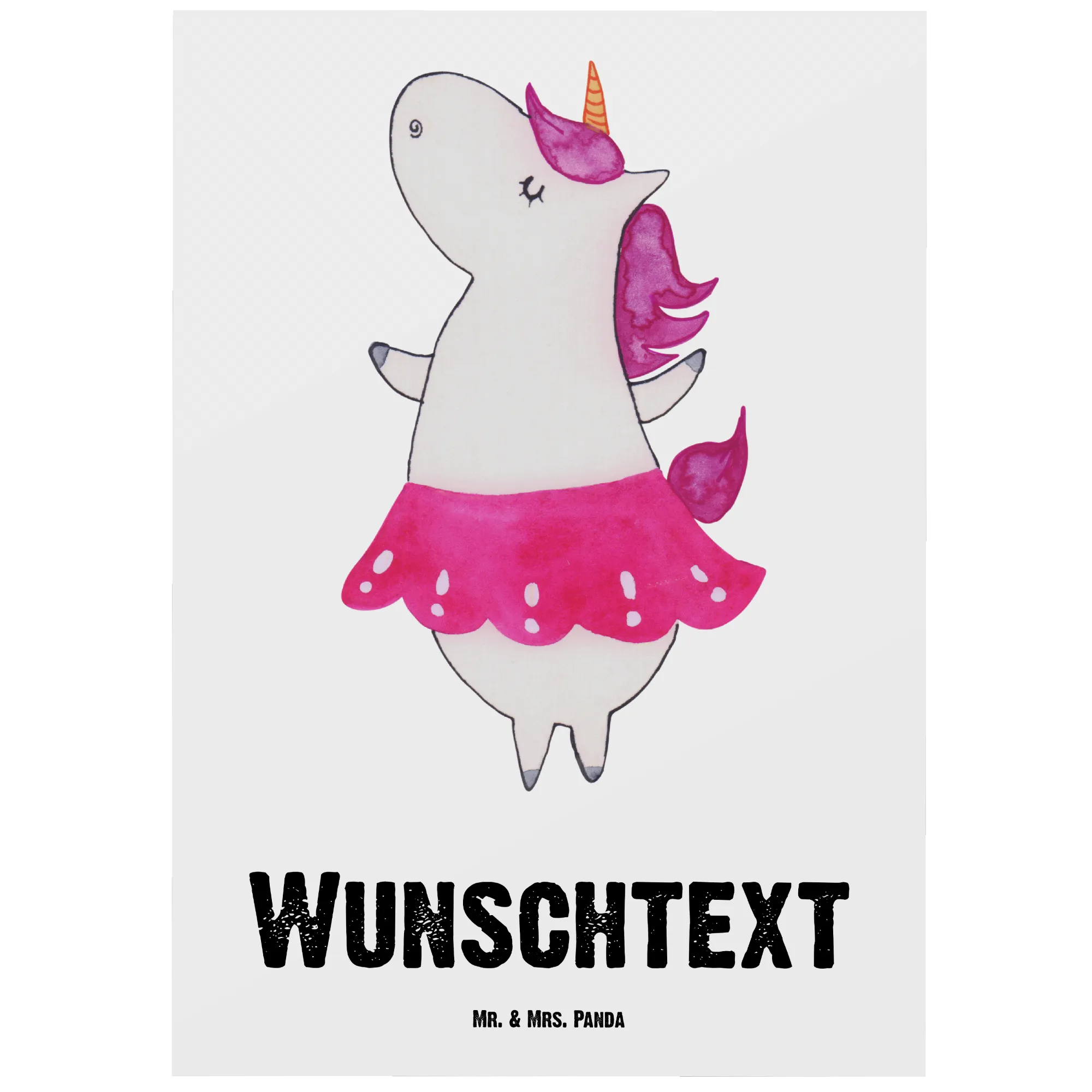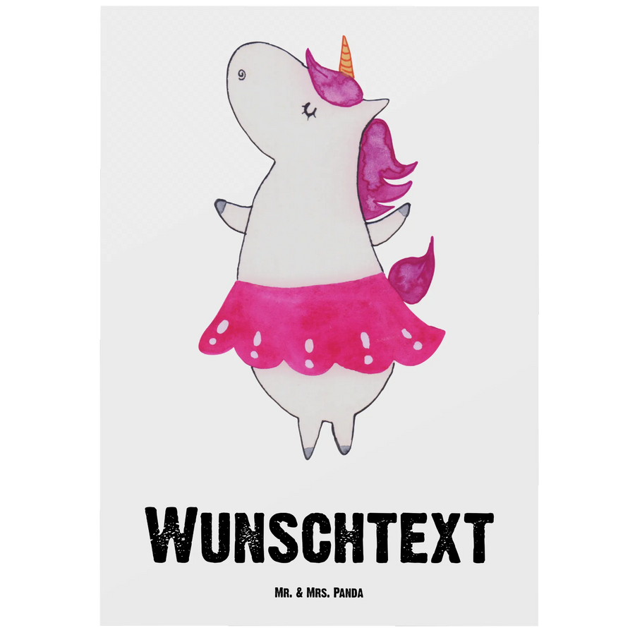 Entdecke die zauberhafte Welt der personalisierten Postkarten mit unserem Einhorn Ballerina-Motiv aus der Einhorn-Kollektion! Diese einzigartige, personalisierbare Postkarte von Mr. & Mrs. Panda ist das perfekte Geschenk für alle, die das Tanzen lieben und Lebensfreude versprühen. Egal ob für Geburtstagsfeiern, Hochzeiten oder einfach nur als besondere Überraschung für einen Freund - diese Karte wird Herzen höher schlagen lassen!