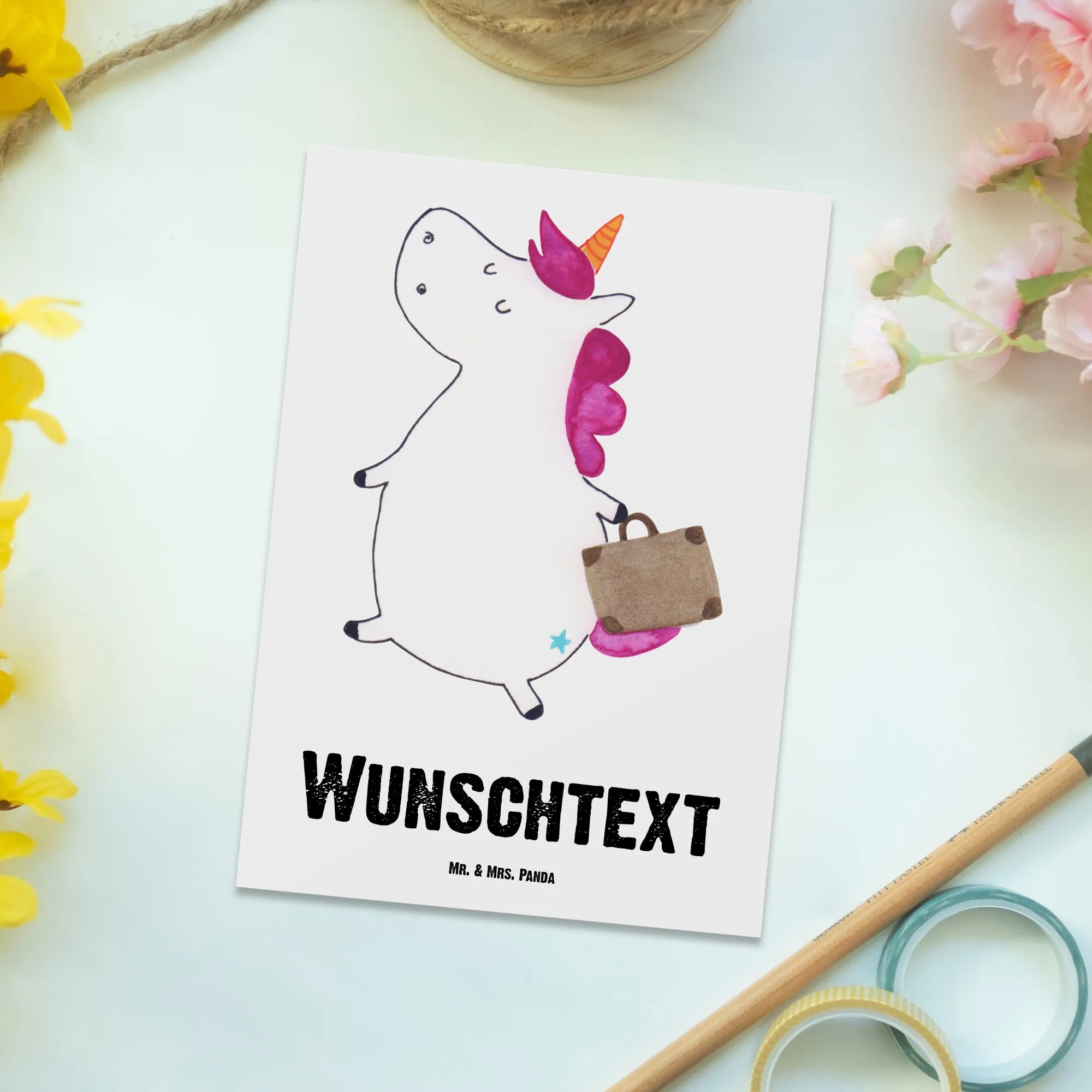 Die personalisierte Postkarte "Einhorn Koffer" von Mr. & Mrs. Panda ist das perfekte Geschenk für alle, die ein großes Herz für Einhörner haben und im tiefsten Innern immer noch das Kind in sich spüren. Mit einem süßen Einhorn, das mit einem Koffer in der Hand unterwegs ist, zaubert diese Karte ein Lächeln ins Gesicht. Das Design vermittelt den Gedanken von Abenteuern und Reisen und erinnert uns daran, dass das Leben manchmal einfach ein wenig magischer sein sollte. Diese Postkarte eignet sich hervorragend als Einladung zur nächsten Einhorn-Themenparty oder als Grußkarte für deinen besten Freund, um einfach mal „Danke“ zu sagen.