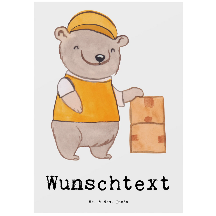 Die personalisierte Postkarte "Fachlagerist mit Herz" aus der Kollektion Berufe von Mr. & Mrs. Panda ist das perfekte Geschenk für alle Lagerarbeiter, Fachlageristen und Lagerverwalter. Diese einzigartige Postkarte wurde mit viel Liebe zum Detail gestaltet und zeigt einen niedlichen Bären mit einem orangenen Helm, perfekt für alle, die stolz auf ihren Beruf sind. Egal, ob zum Berufsabschied, zur Ausbildung, zum Jubiläum oder einfach um Danke zu sagen – diese Karte ist immer eine tolle Wahl.