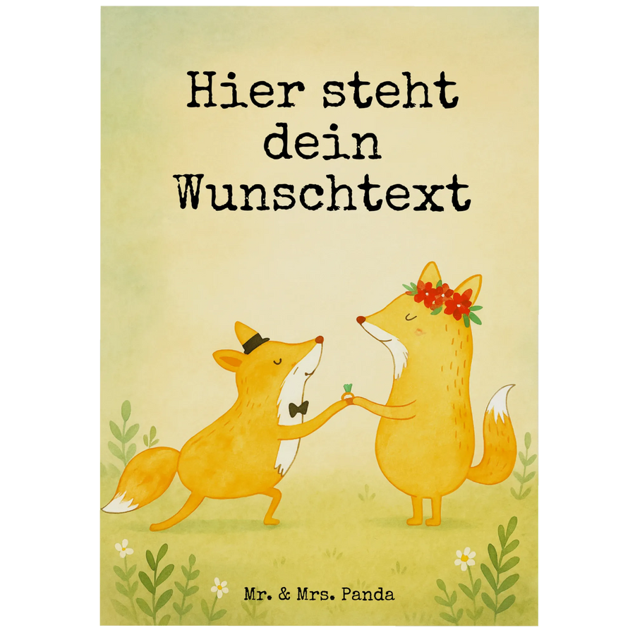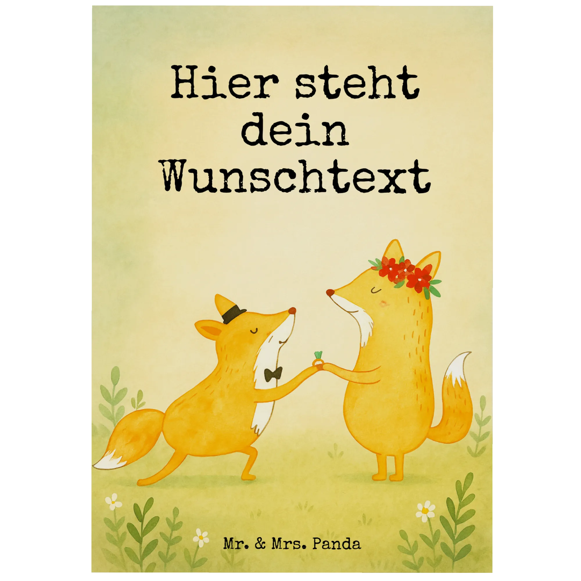 Personalisierte Postkarte Füchse Hochzeit – Die liebevolle Grußkarte von Mr. & Mrs. Panda für Hochzeit, Verlobung und Trauung. Auf der Vorderseite siehst du ein zartes Aquarellmotiv: Ein Fuchs kniet, hält die Hand seiner Liebsten und präsentiert einen funkelnden Diamantring. Der beigefügte Slogan „Und dann hört sich lebenslang auf einmal so romantisch an...." macht die Stimmung perfekt.