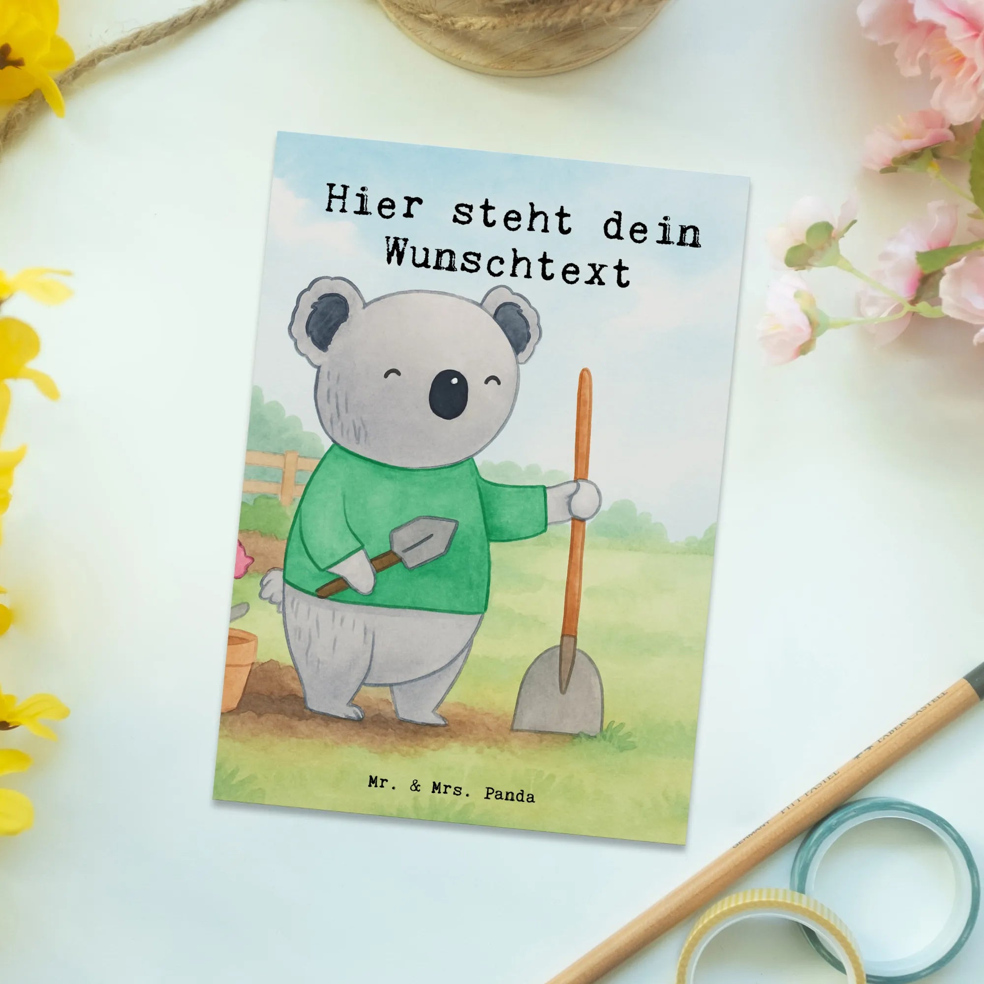Der kleine Koala mit der Schaufel zeigt uns, dass die Leidenschaft für das Gärtnern überall zu finden ist. Unter dem Motto "Garten- und Landschaftsbauer aus Leidenschaft" vermittelt er die Botschaft, dass auch die kleinsten Dinge im Leben Freude bereiten können. Mit jeder Pflanze, die er setzt, wächst nicht nur die Vielfalt der Natur, sondern auch die Freude an der Gartenarbeit. Er lädt uns alle ein, die Wunder der Pflanzenwelt zu entdecken und uns selbst als Garten- und Landschaftsbauer zu versuchen. Dieser Koala ist ein lebendiges Beispiel dafür, wie viel Freude, Farbe und Kreativität ins Leben gebracht werden können, indem wir uns der Natur widmen und sie pflegen.
