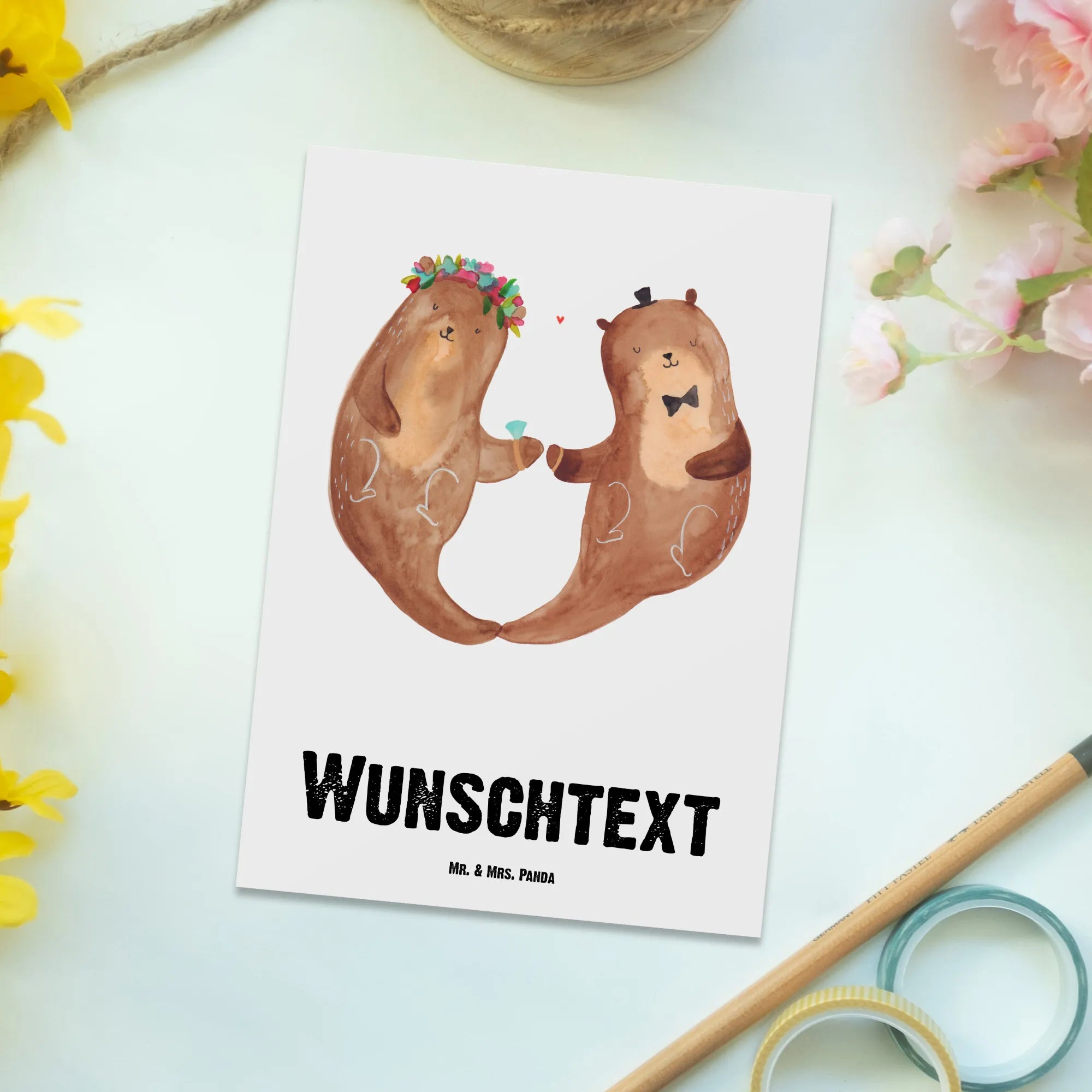 Personalisierte Postkarte Hochzeitspaar Otter