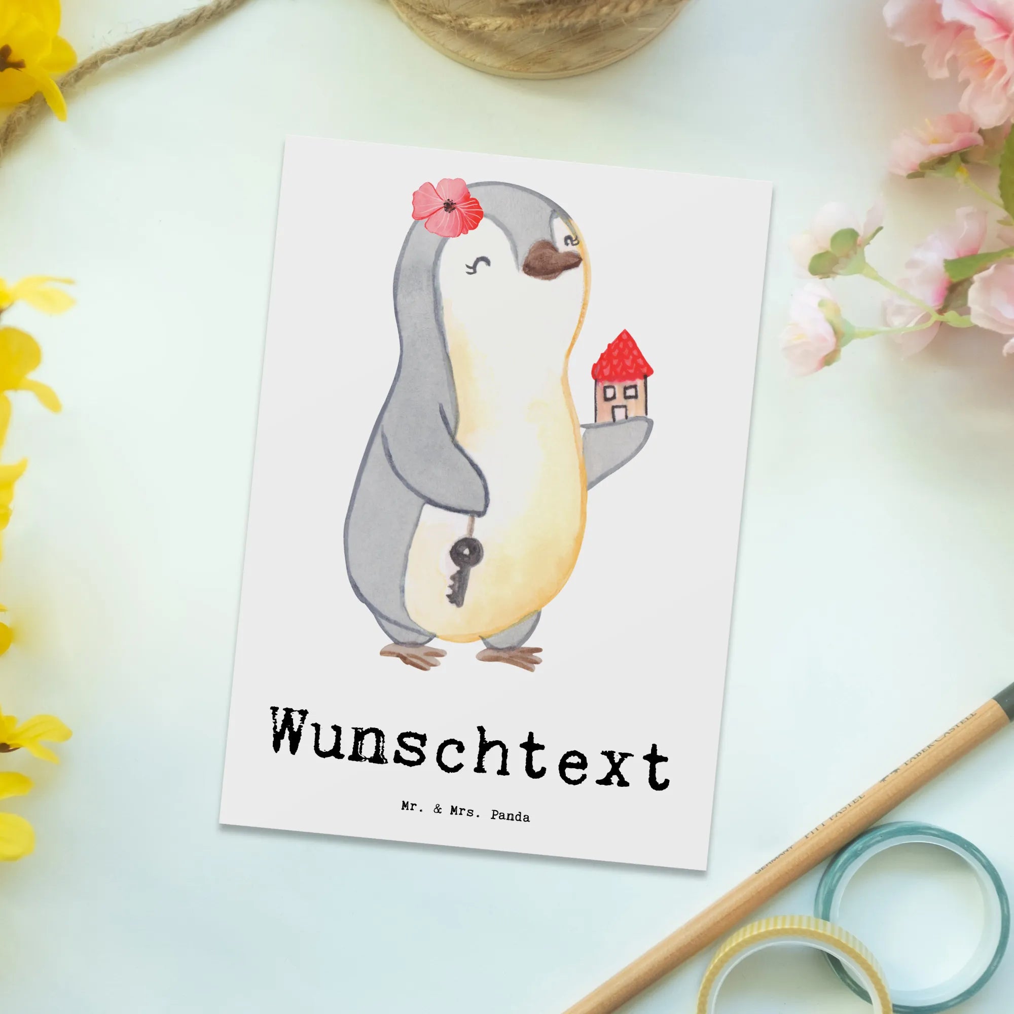 Du bist auf der Suche nach dem perfekten Geschenk für eine Immobilienmaklerin? Dann ist unsere personalisierte Postkarte "Immobilienmaklerin mit Herz" genau das Richtige für dich! Diese liebevoll gestaltete Postkarte von Mr. & Mrs. Panda begeistert nicht nur mit ihrem niedlichen Pinguin-Motiv, sondern auch mit einem charmanten Spruch: "Du bist nur ein halber Mensch, wenn du keine Immobilienmaklerin bist!". So bringst du deine Wertschätzung auf kreative Weise zum Ausdruck und zauberst ein Lächeln auf das Gesicht der Empfängerin.