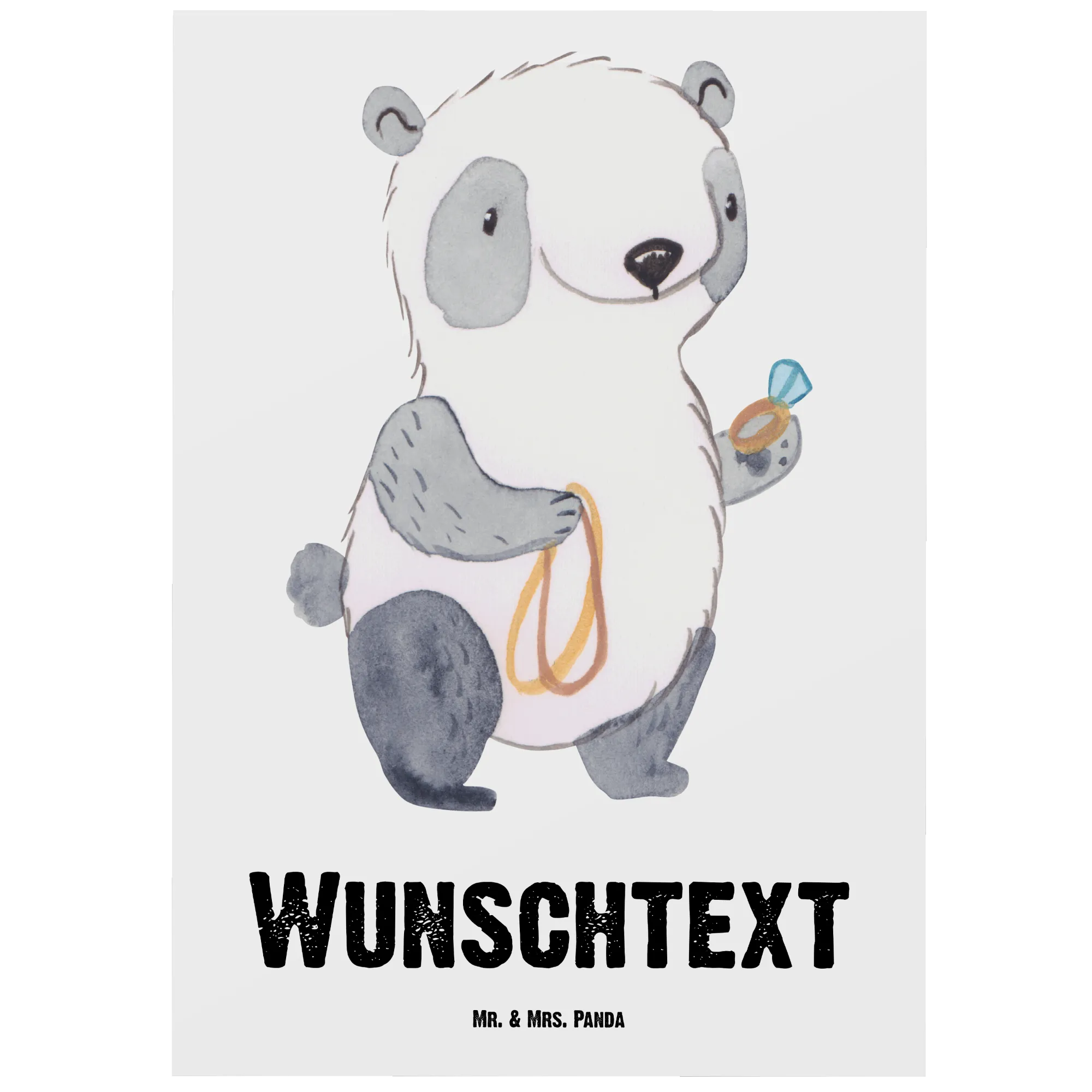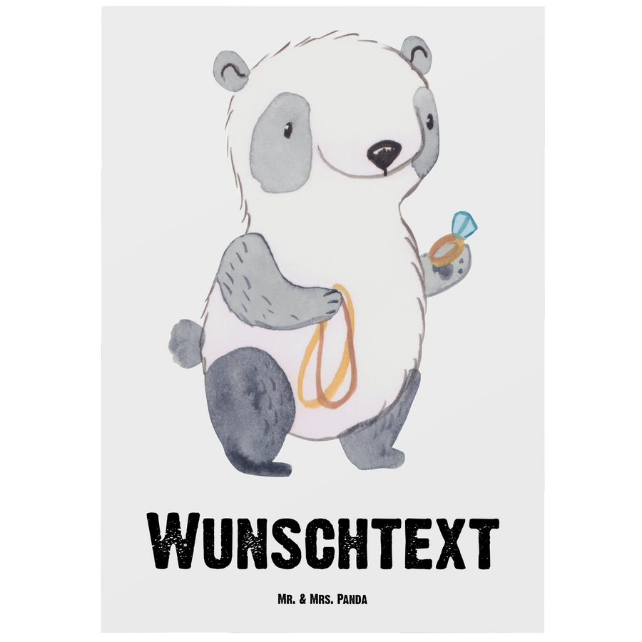 Entdecke die perfekt personalisierte Postkarte 'Juwelier mit Herz' von Mr. & Mrs. Panda! Diese einzigartige Postkarte aus der kreativen Berufe-Kollektion ist ein ideales Geschenk für Juweliere, Goldschmiede oder Schmuckwarenhändler. Ob zur Feier einer Eröffnung, einem Dienstjubiläum oder einfach als Dankeschön für deine Kollegen – diese Postkarte trifft immer ins Schwarze!