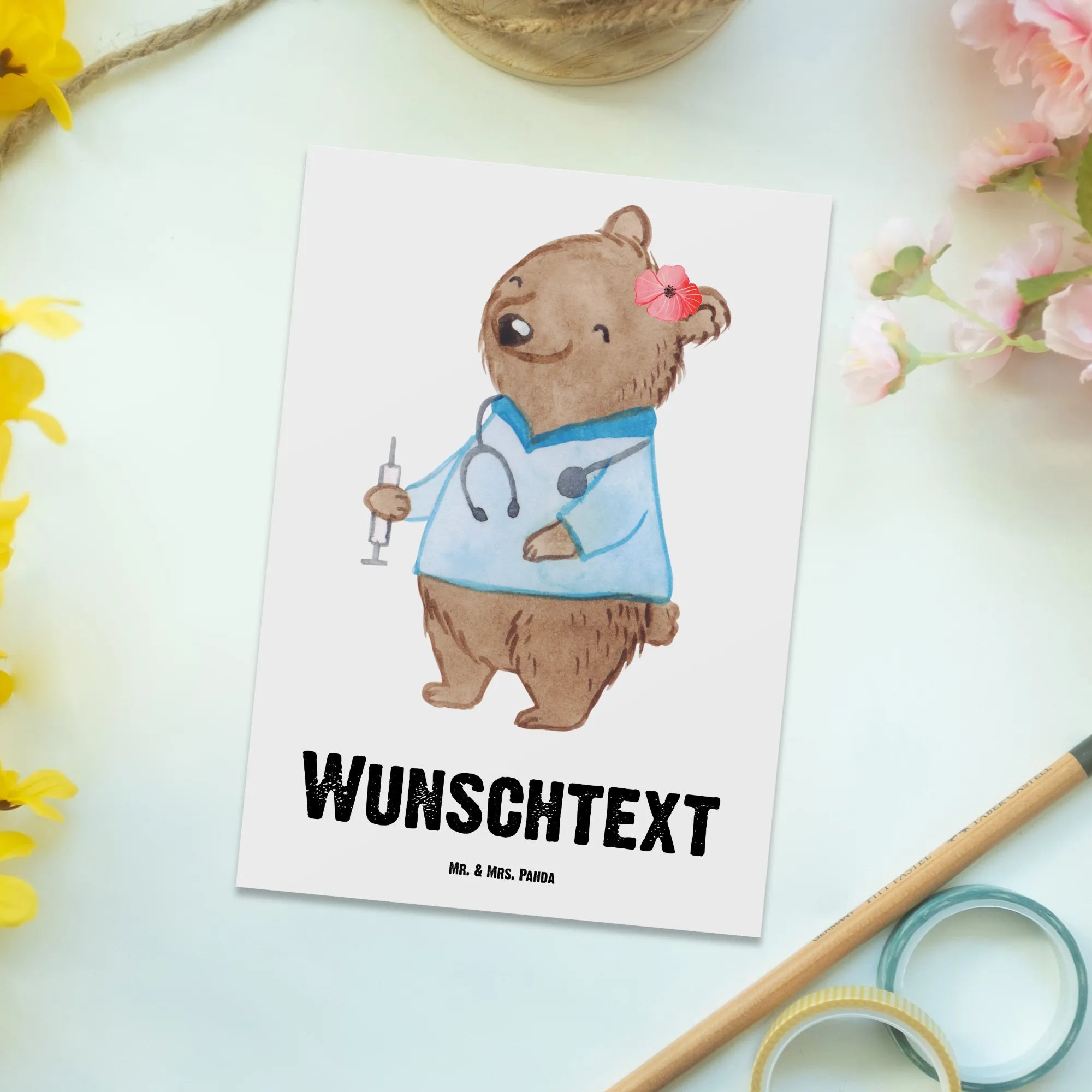 Entdecke die zauberhafte, personalisierte Postkarte "Krankenpflegehelferin mit Herz" von Mr. & Mrs. Panda! Diese einzigartige Grußkarte ist nicht nur ein wunderschönes Geschenk, sondern auch eine liebevolle Hommage an all die engagierten Pflegekräfte da draußen.