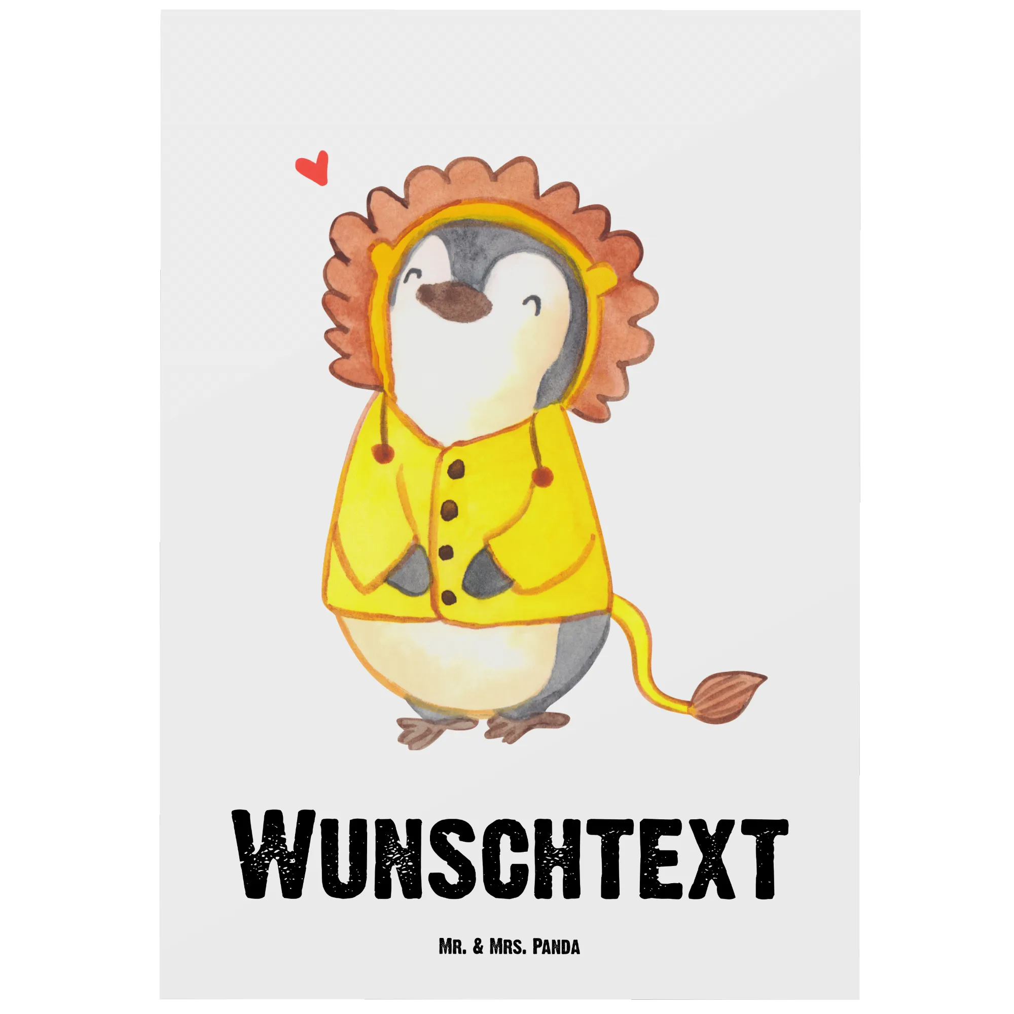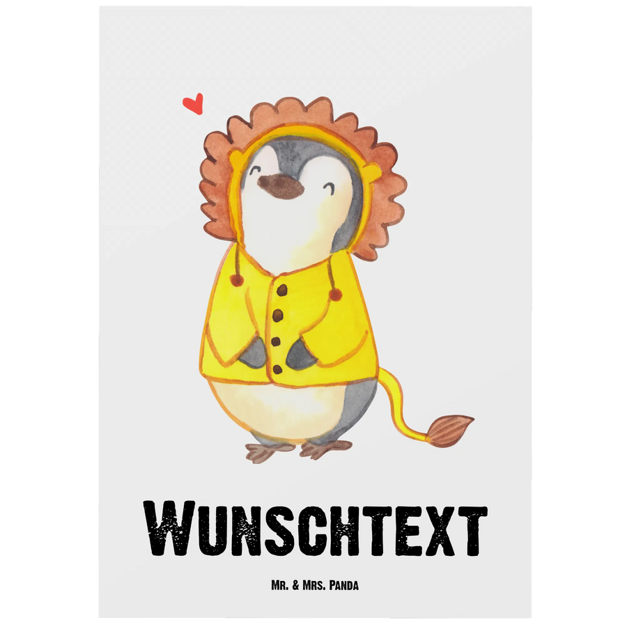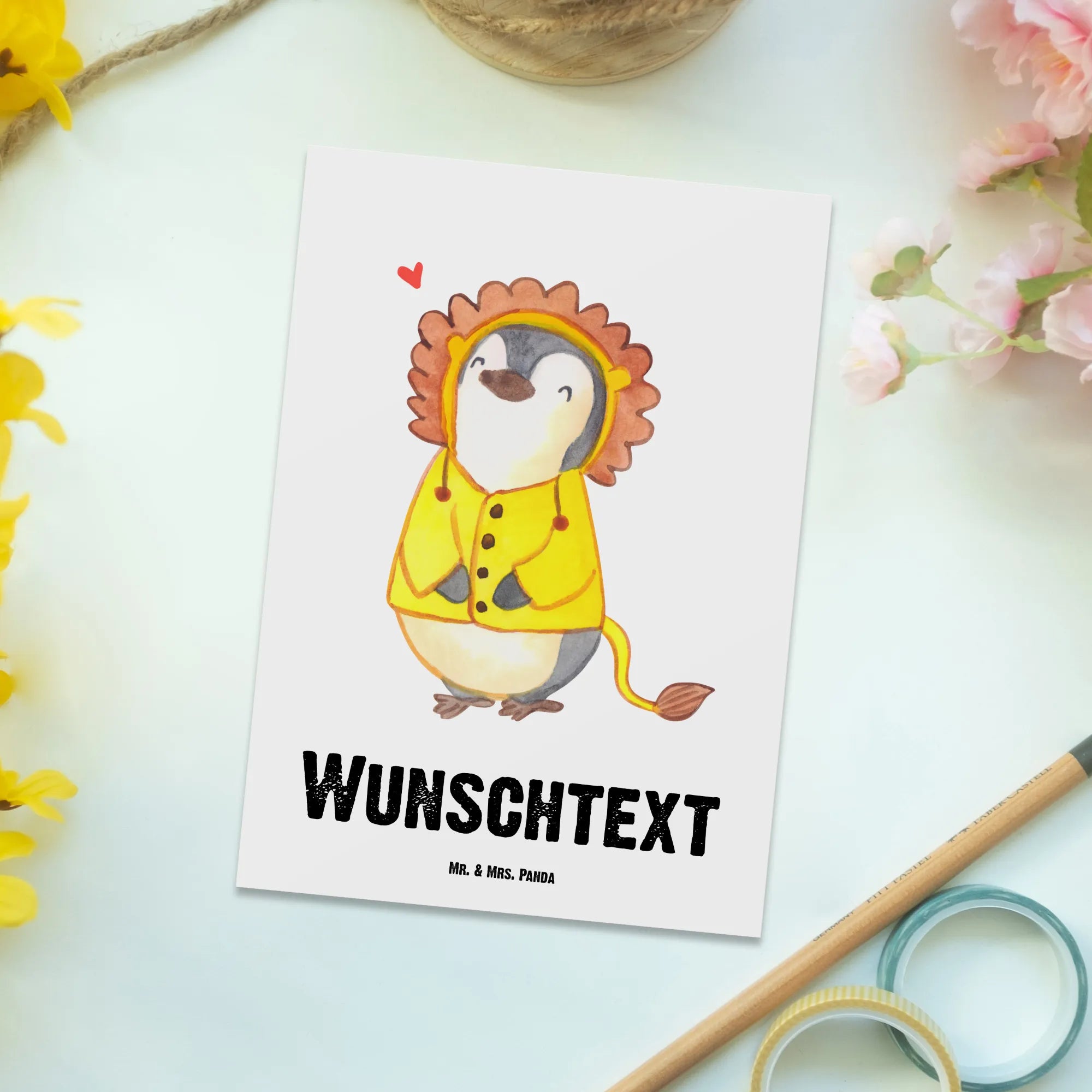 Entdecke die perfekte, personalisierte Postkarte mit dem zauberhaften Löwen-Motiv aus der Sternzeichen-Kollektion von Mr. & Mrs. Panda! Diese einzigartige Postkarte ist nicht nur ein optischer Hingucker, sondern auch ein ganz besonderes Geschenk für alle, die im Tierkreiszeichen Löwe geboren wurden. Mit ihrem liebevoll handgezeichneten Design, das einen fröhlichen Pinguin im Löwenkostüm zeigt, verkörpert die Karte Lebensfreude und Individualität. Der Slogan „Im Herzen Löwe: Kühn wie der Sonnenaufgang, majestätisch wie der König.“ ist das Sahnehäubchen, das jedem Empfänger ein Lächeln ins Gesicht zaubert.